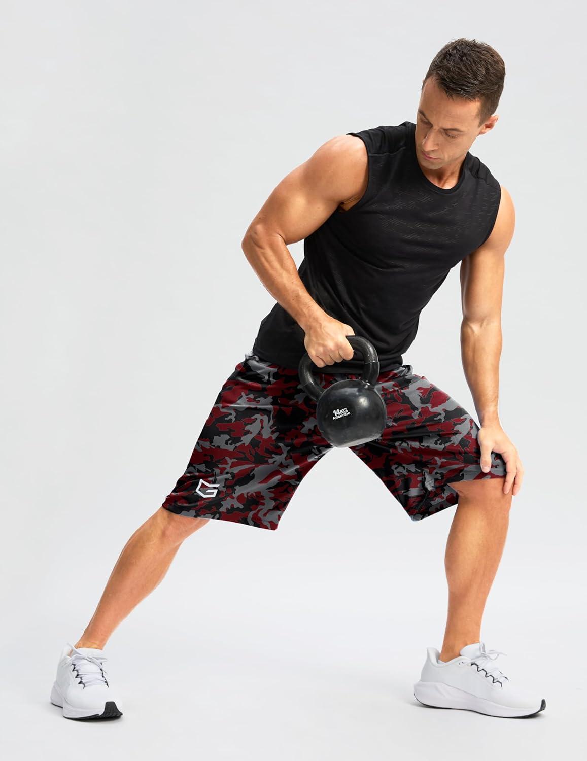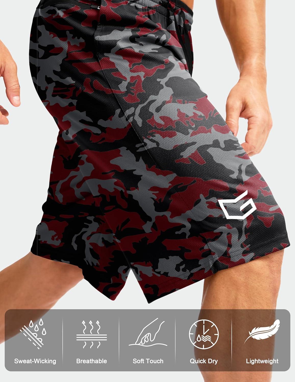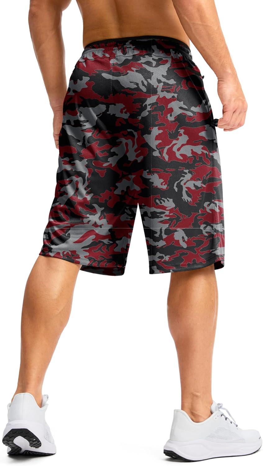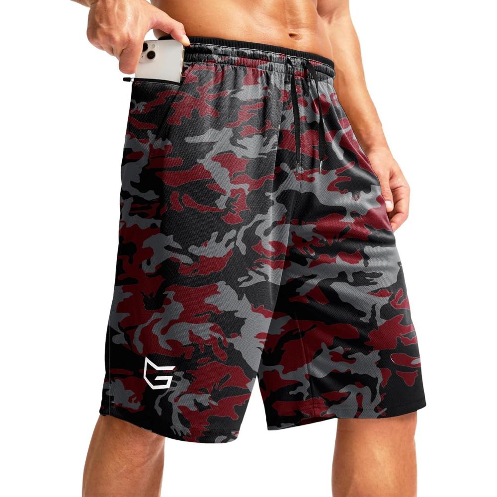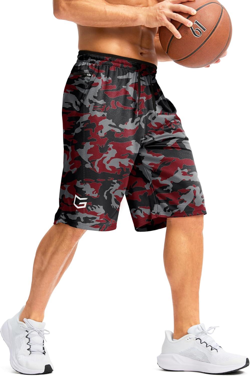 G Gradual Men's Long Basketball Shorts with Zipper Pocket 11'' Quick Dry Gym Shorts Lightweight Mesh Athletic Shorts for Men(Red Camo)