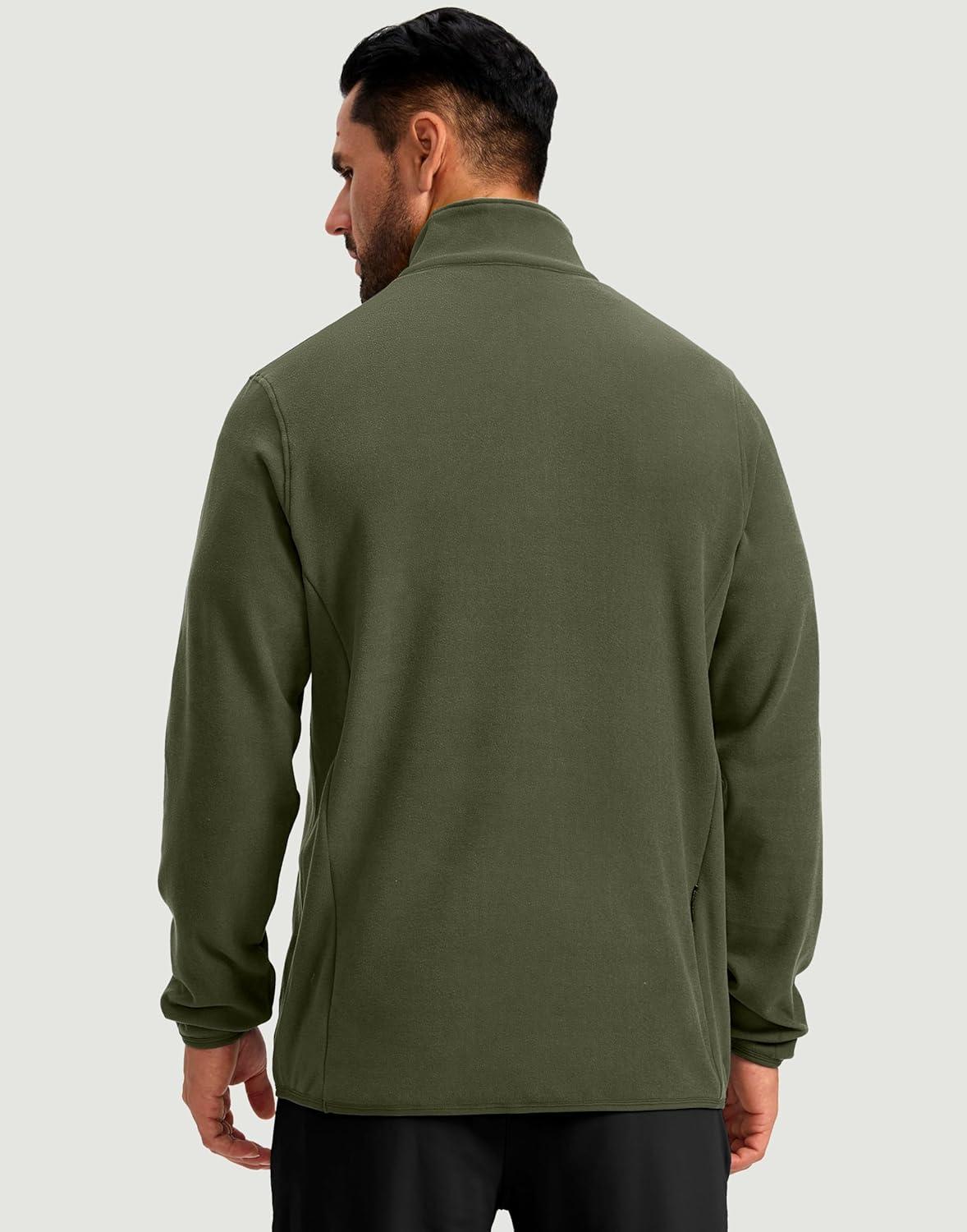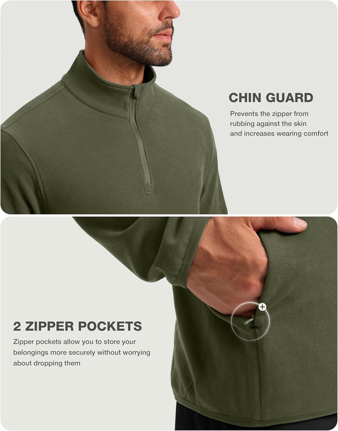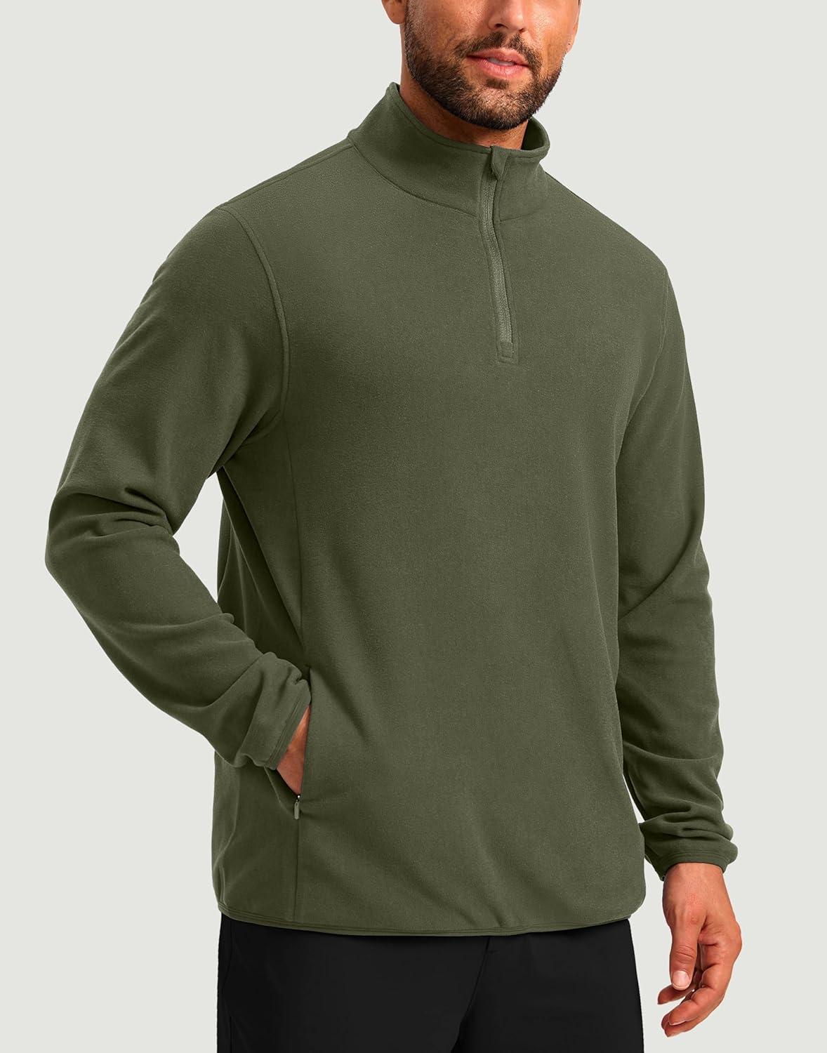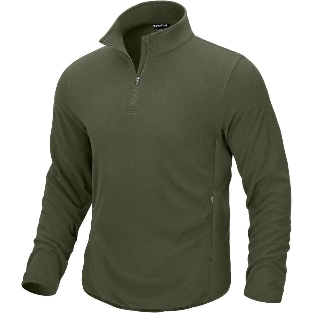 G Gradual Mens Quarter Zip Pullover Fleece with 2 Zipper Pockets Long Sleeve Golf Shirt Winter Athletic Sweater Lightweight(Army Green)