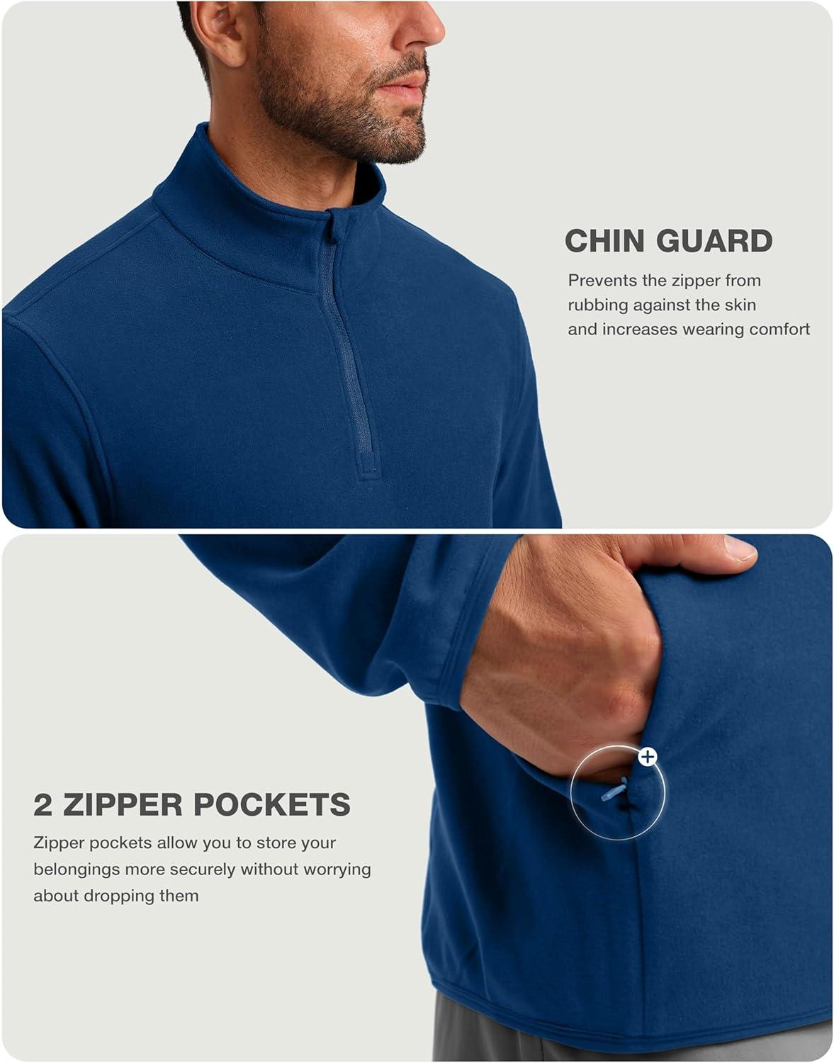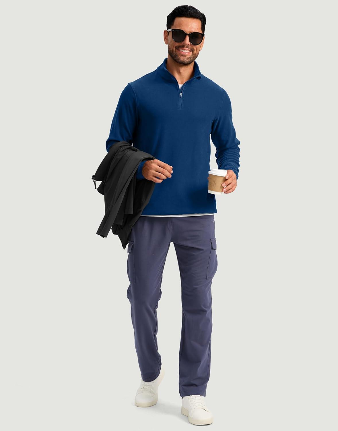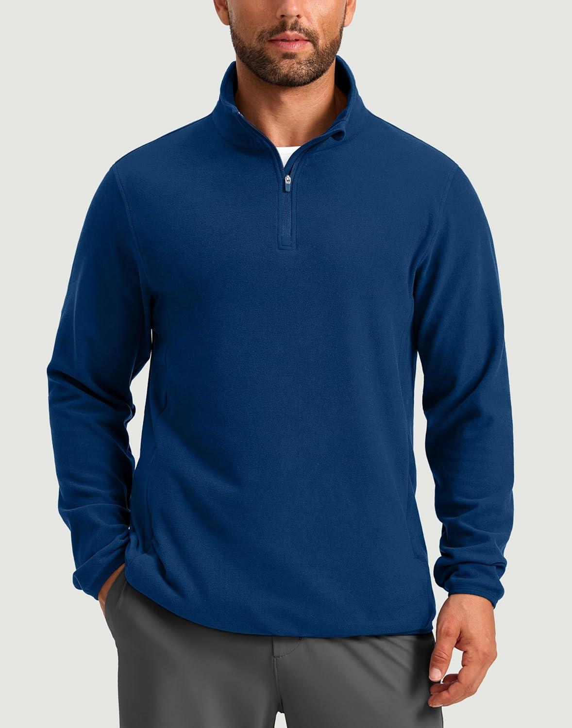 G Gradual Mens Quarter Zip Pullover Fleece with 2 Zipper Pockets Long Sleeve Golf Shirt Winter Athletic Sweater Lightweight(Blue)