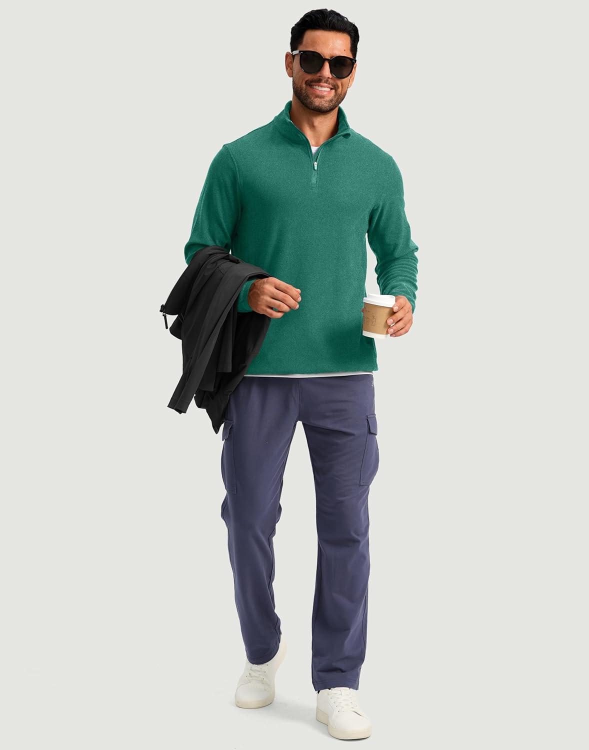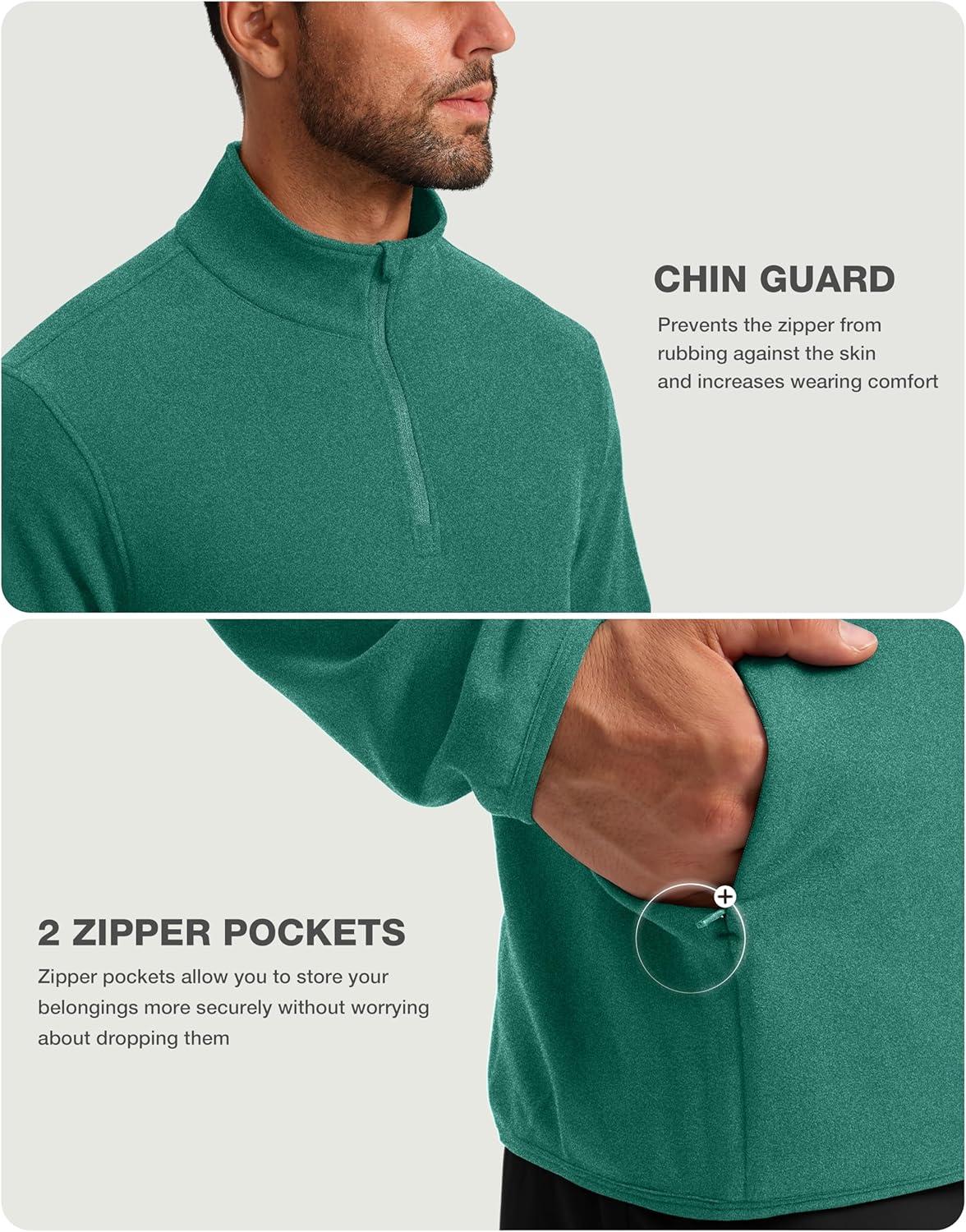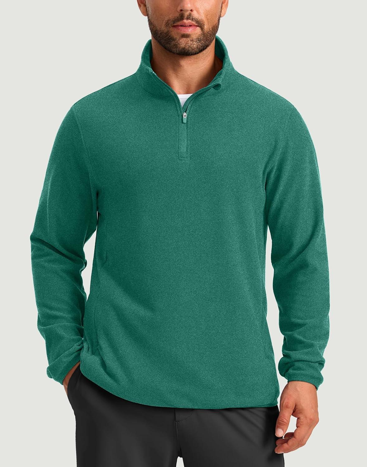 G Gradual Mens Quarter Zip Pullover Fleece with 2 Zipper Pockets Long Sleeve Golf Shirt Winter Athletic Sweater Lightweight(Forest Green)