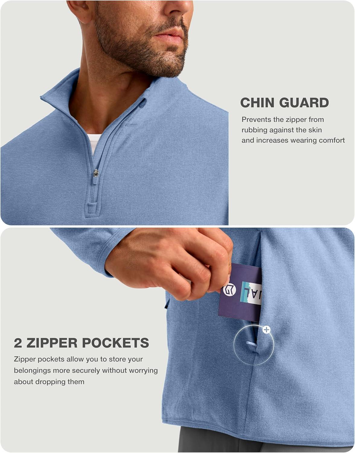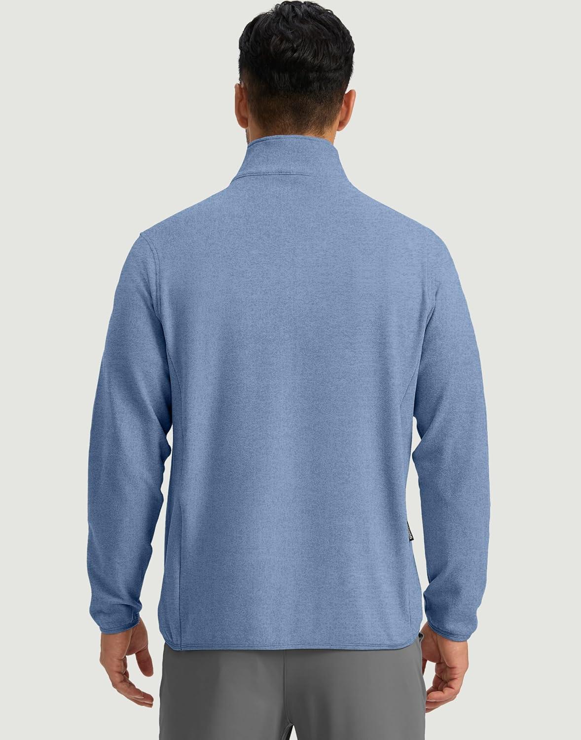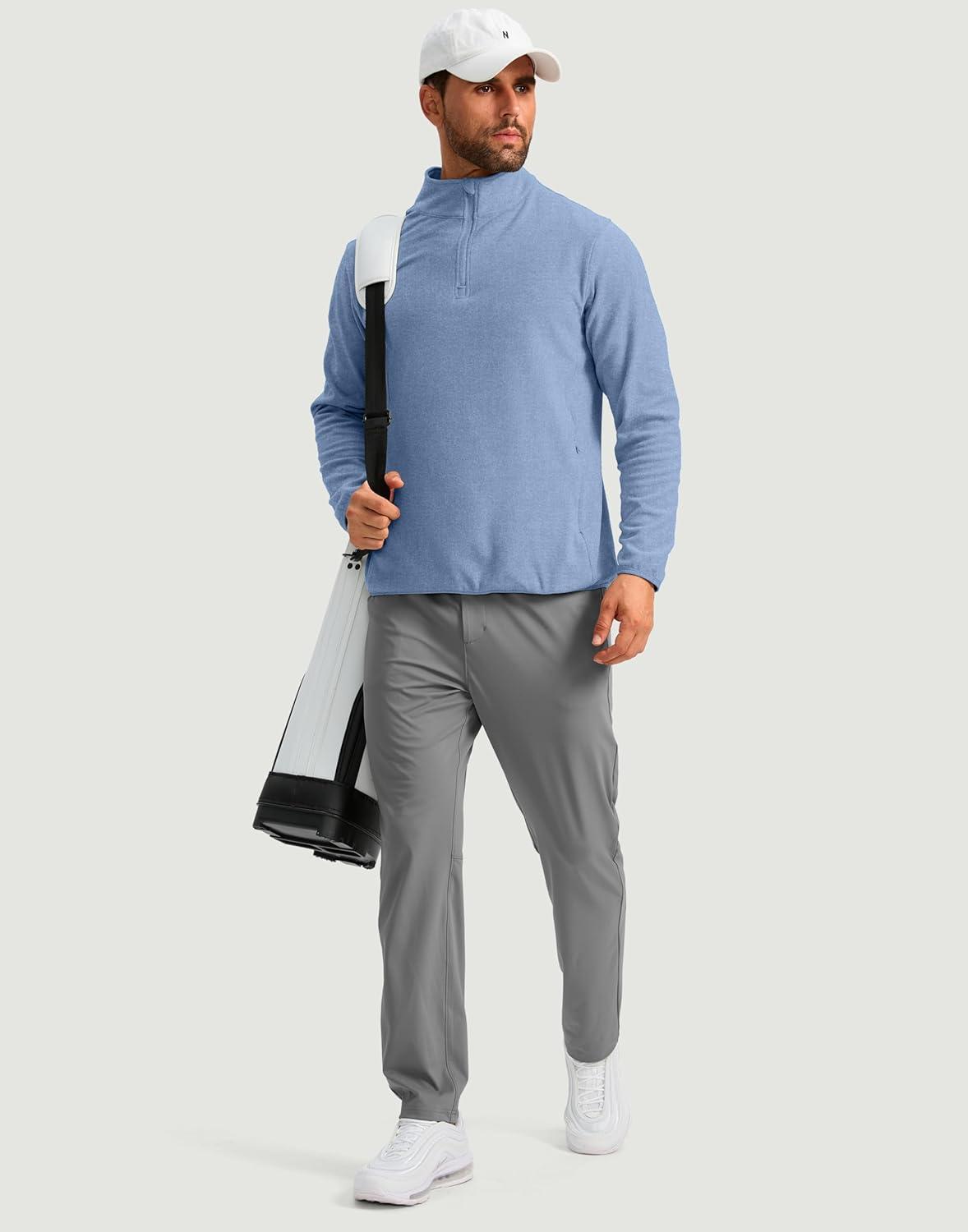 G Gradual Mens Quarter Zip Pullover Fleece with 2 Zipper Pockets Long Sleeve Golf Shirt Winter Athletic Sweater Lightweight(Heather Haze Blue)