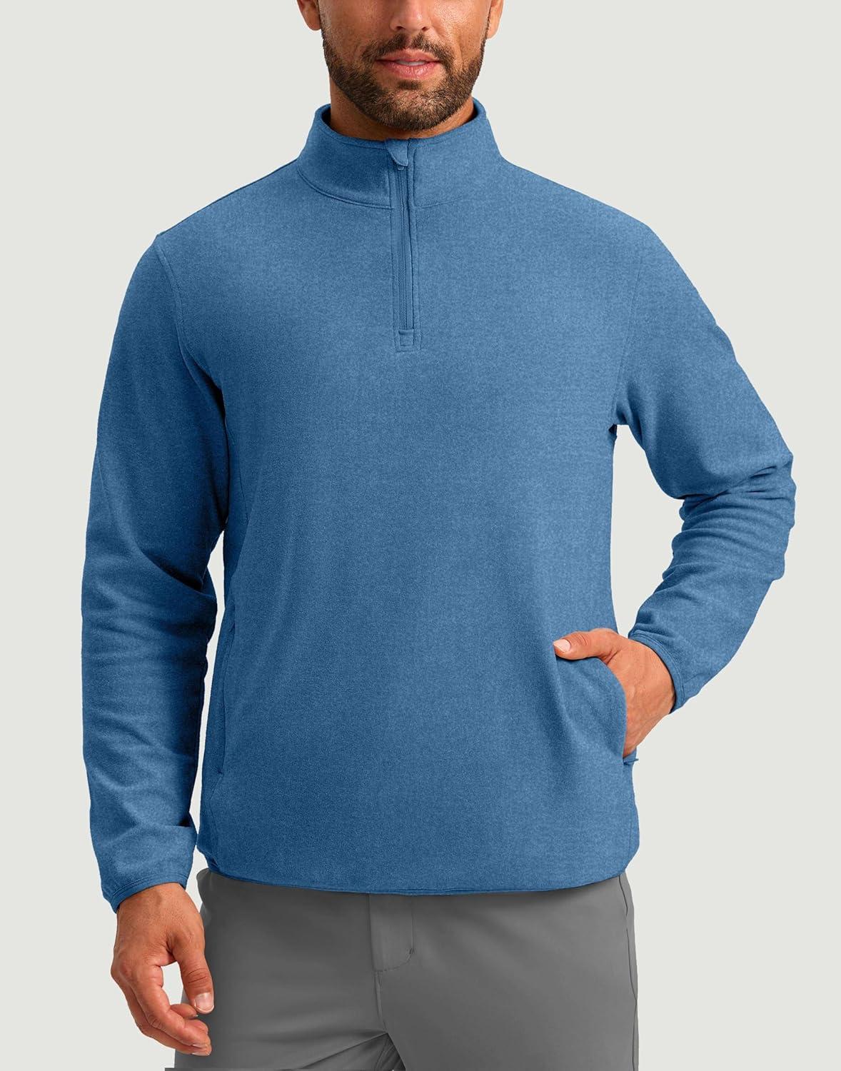 G Gradual Mens Quarter Zip Pullover Fleece with 2 Zipper Pockets Long Sleeve Golf Shirt Winter Athletic Sweater Lightweight(Heather Sky Blue)
