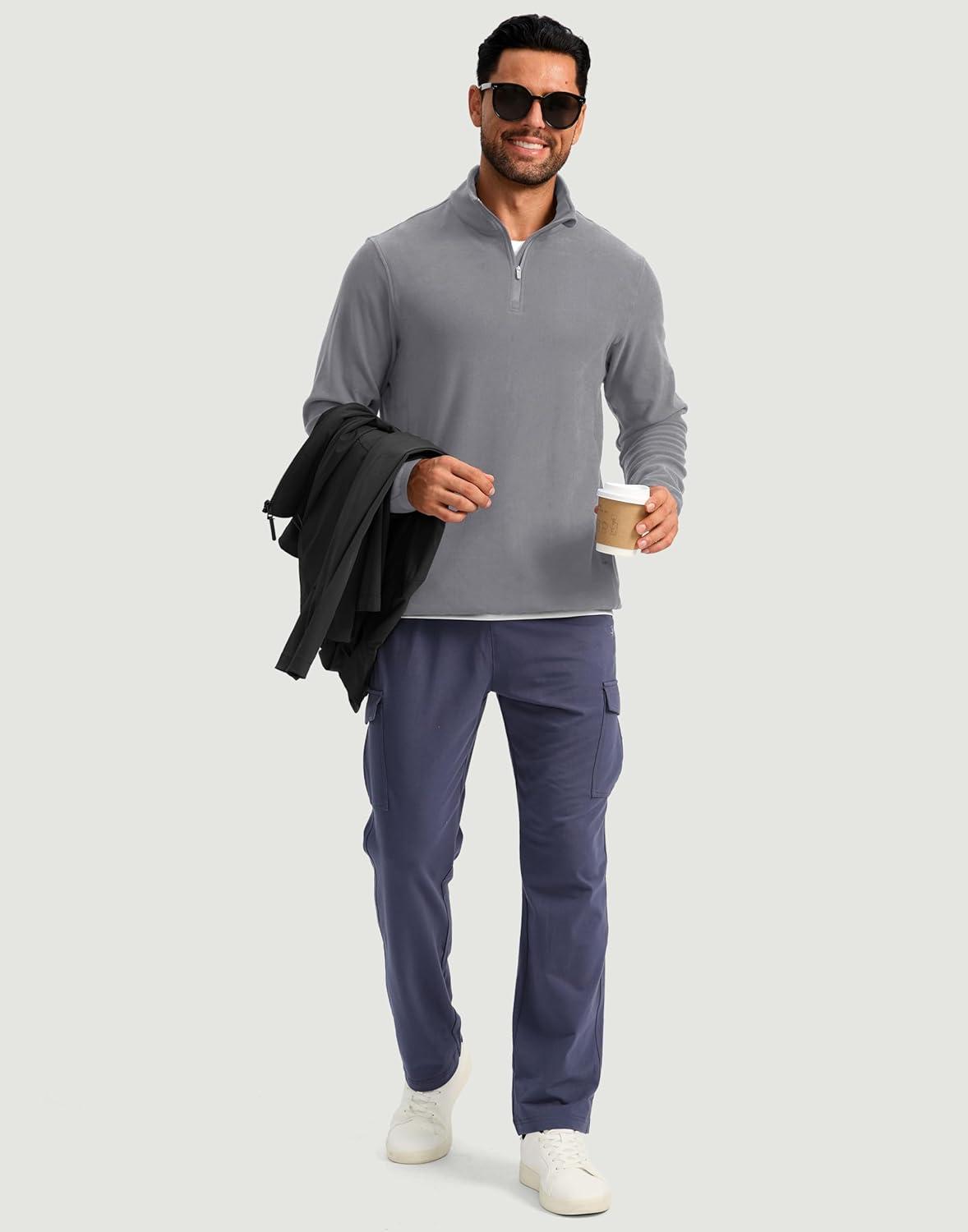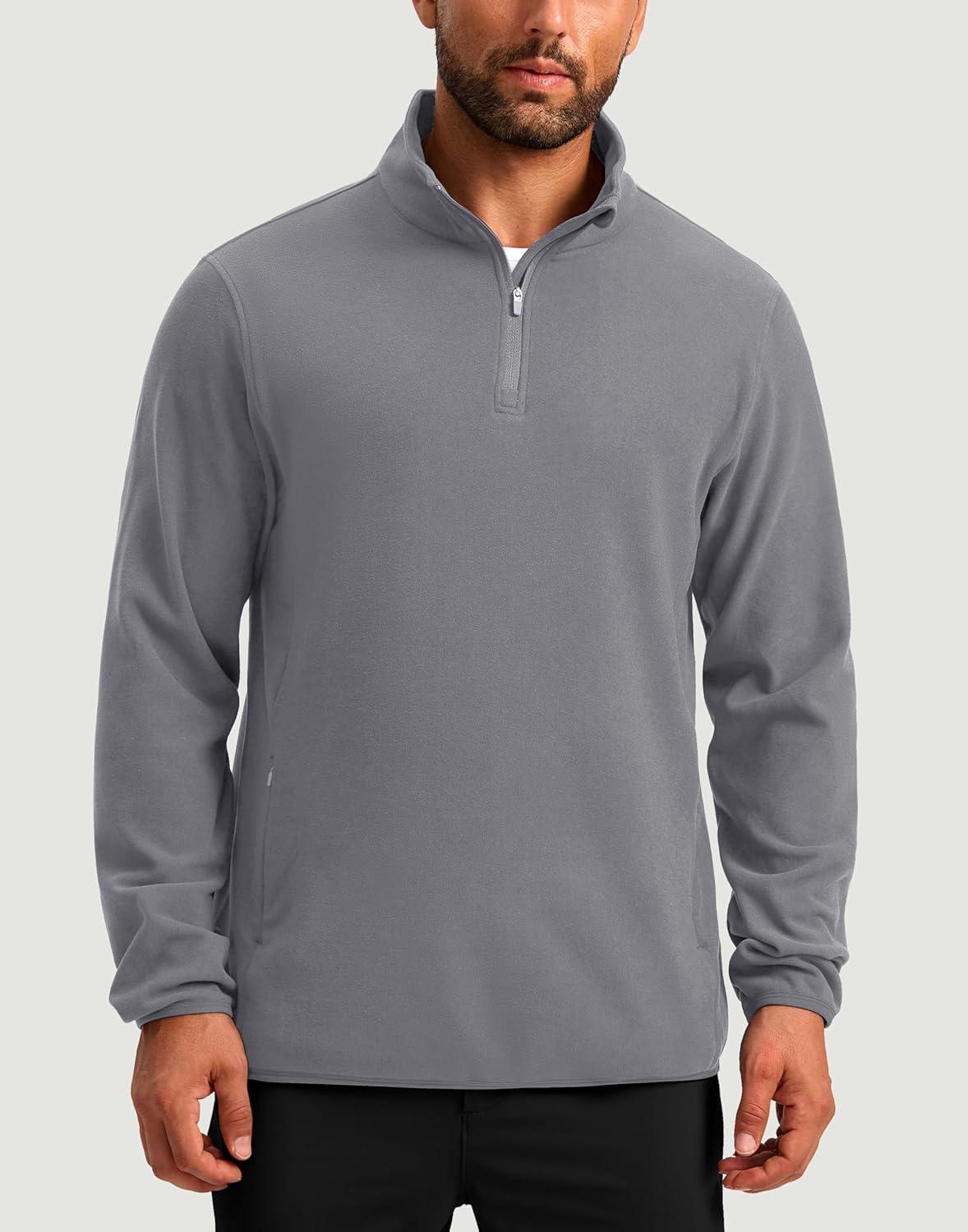 G Gradual Mens Quarter Zip Pullover Fleece with 2 Zipper Pockets Long Sleeve Golf Shirt Winter Athletic Sweater Lightweight(Light Grey)