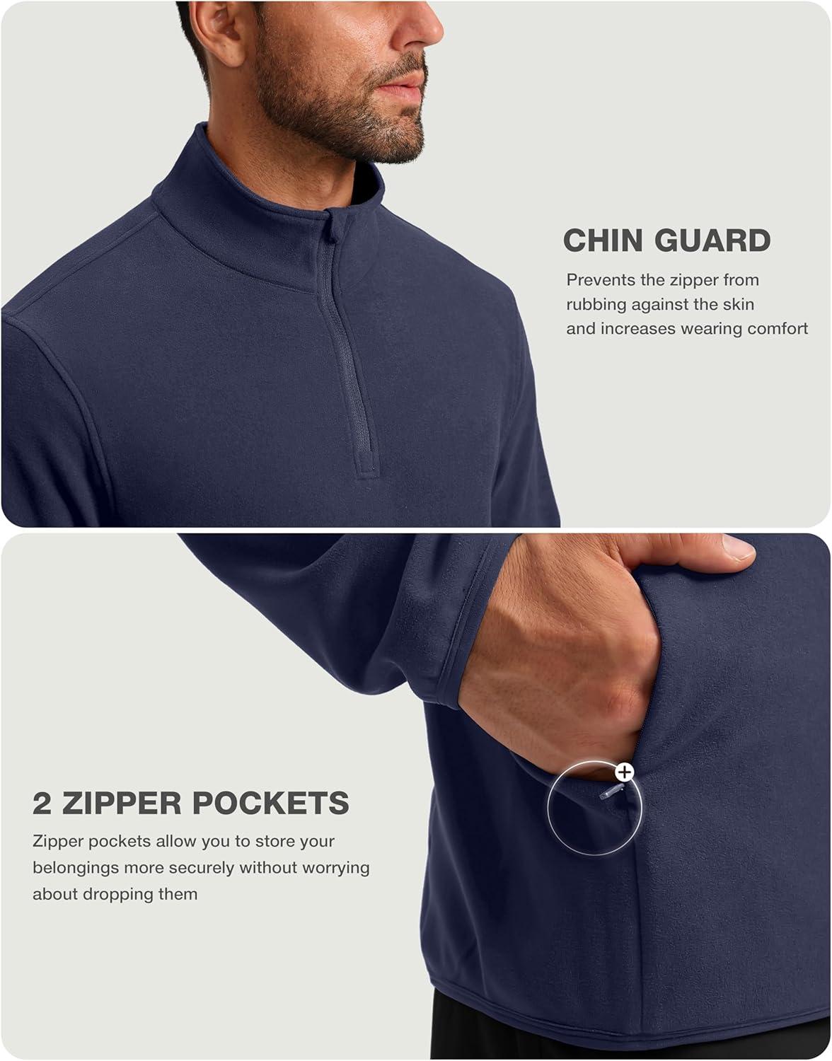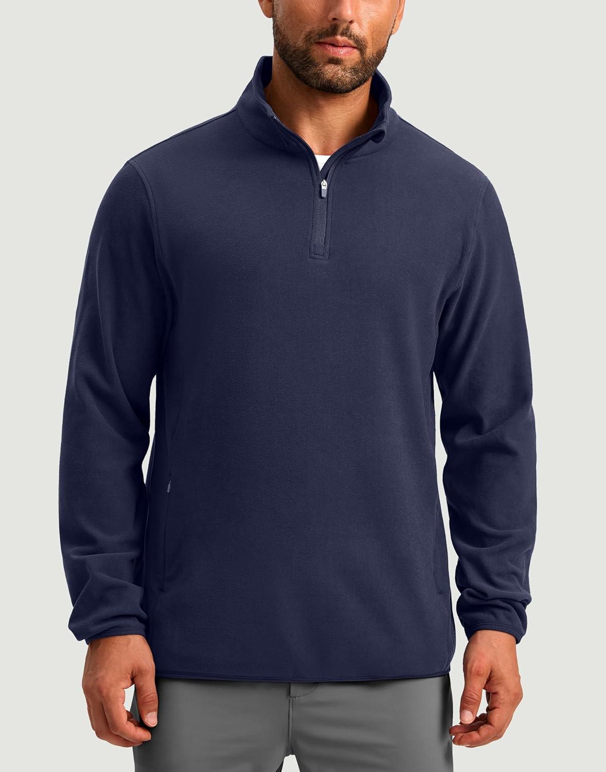 G Gradual Mens Quarter Zip Pullover Fleece with 2 Zipper Pockets Long Sleeve Golf Shirt Winter Athletic Sweater Lightweight(Navy Blue)