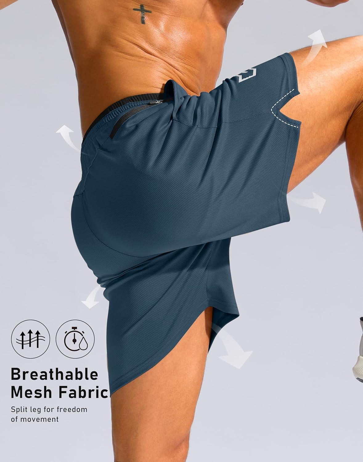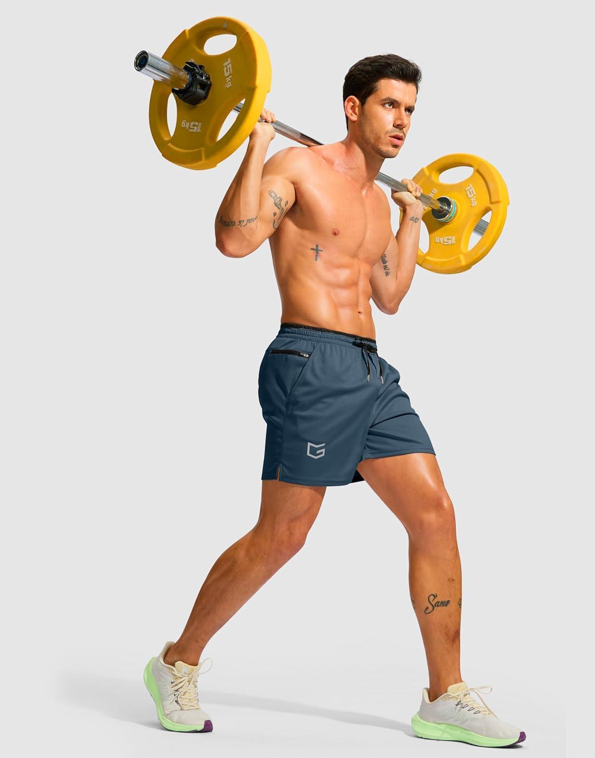G Gradual Men’s Running Athletic Shorts with Zipper Pocket 5″/ 7″ Lightweight Quick Dry Gym Workout Shorts for Tennis Active(Dusty Blue)