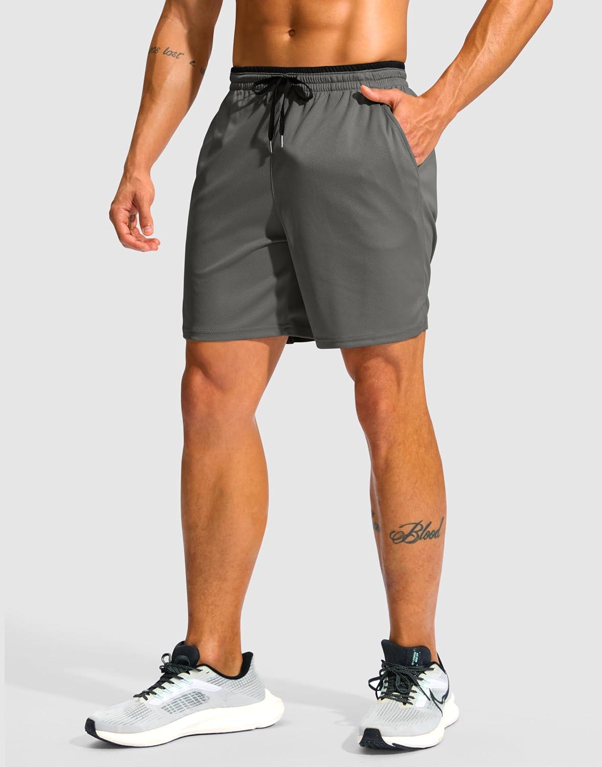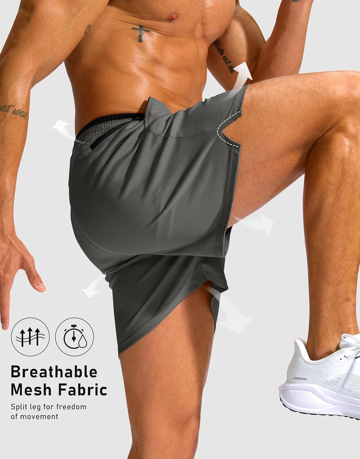 G Gradual Men's Running Athletic Shorts with Zipper Pocket 5"/ 7" Lightweight Quick Dry Gym Workout Shorts for Tennis Active(Grey)