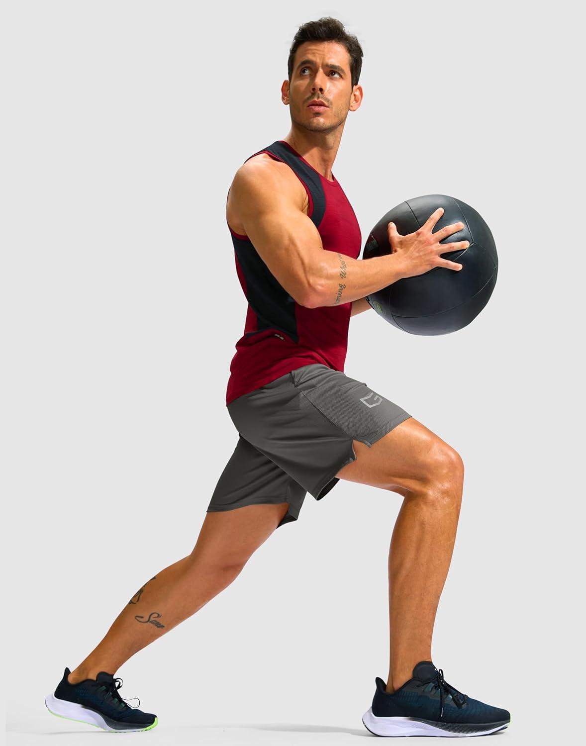 G Gradual Men’s Running Athletic Shorts with Zipper Pocket 5″/ 7″ Lightweight Quick Dry Gym Workout Shorts for Tennis Active(Grey)