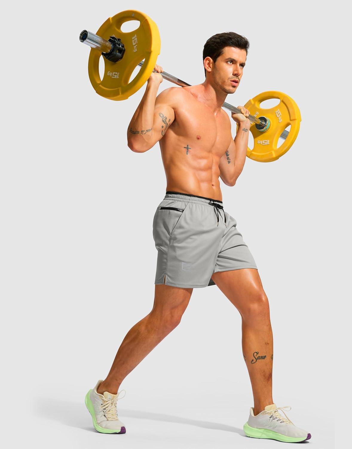 G Gradual Men's Running Athletic Shorts with Zipper Pocket 5"/ 7" Lightweight Quick Dry Gym Workout Shorts for Tennis Active(Llight Grey)