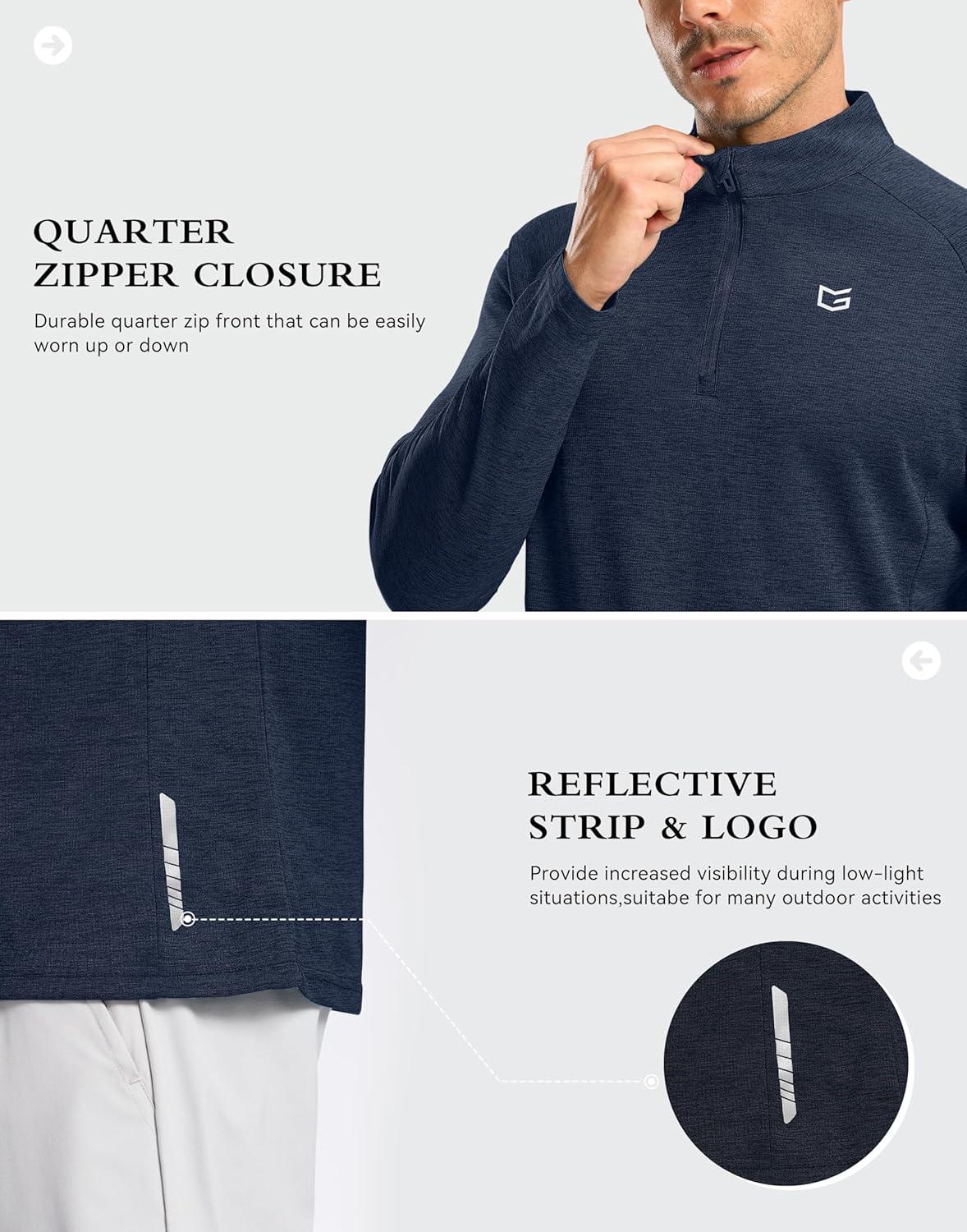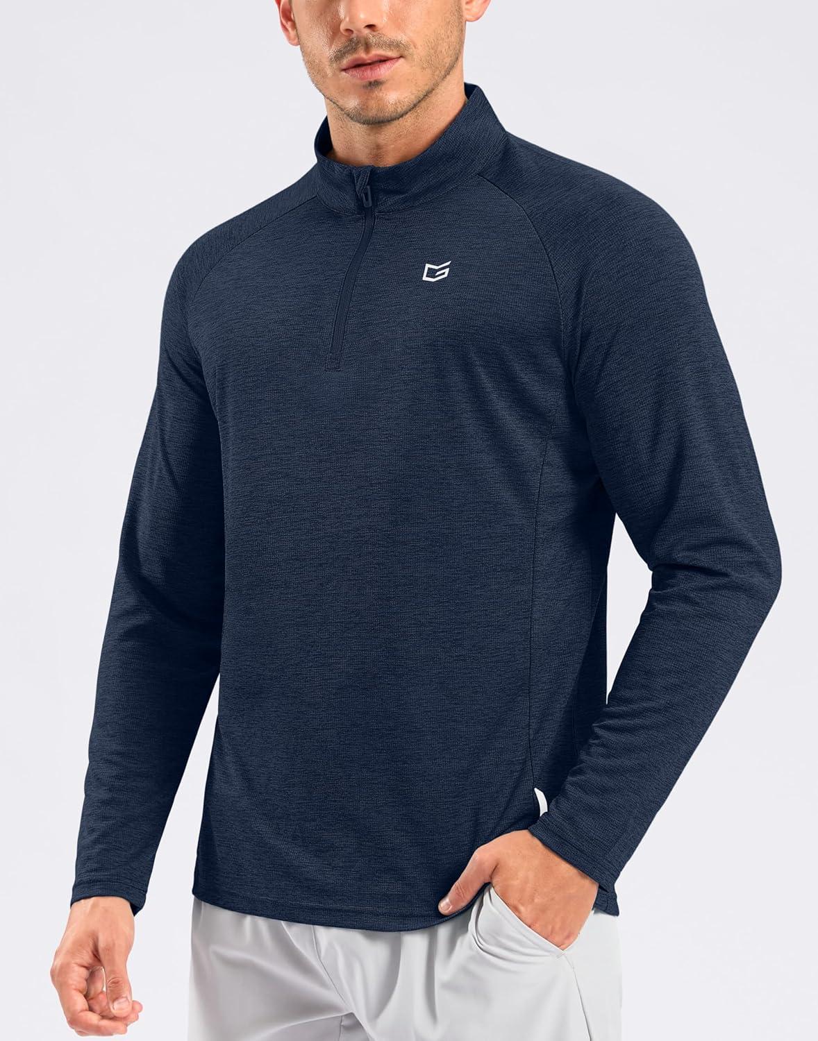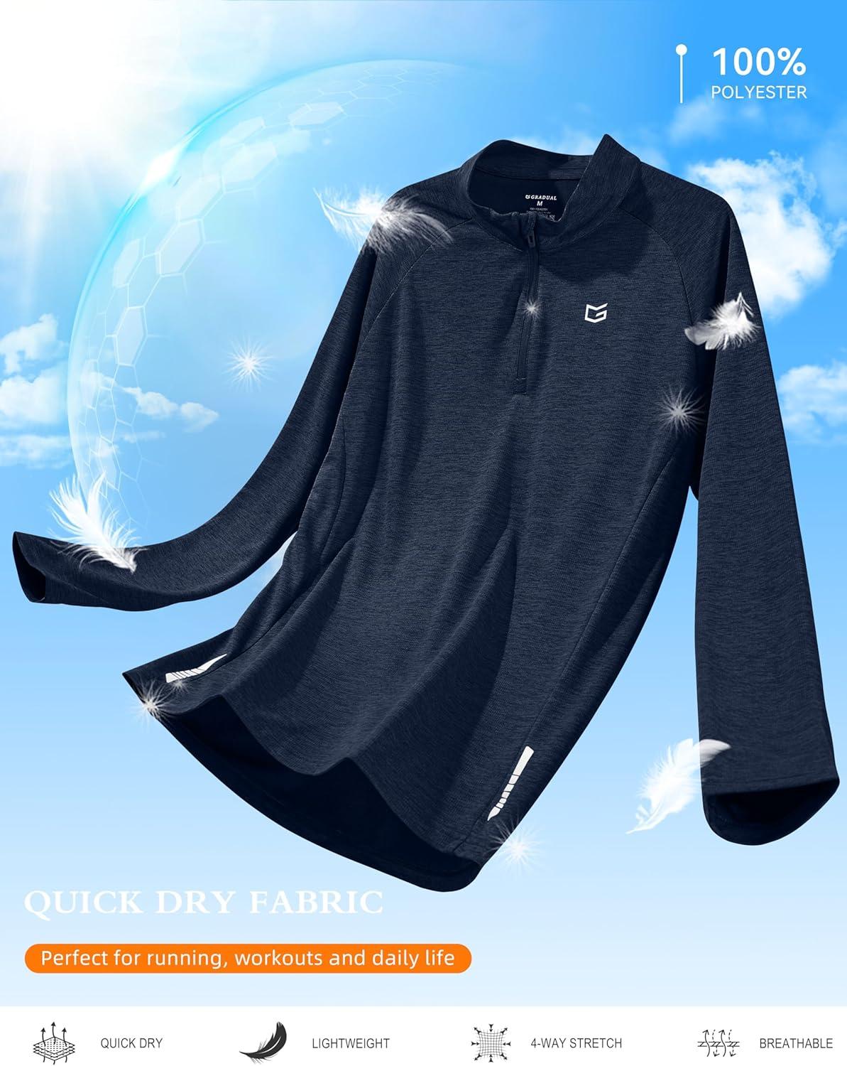 G Gradual Men’s Running Shirts Long Sleeve Athletic Shirt Lightweight Quick Dry Quarter Zip Pullover for Men Workout Gym Golf(Dark Blue Heather)