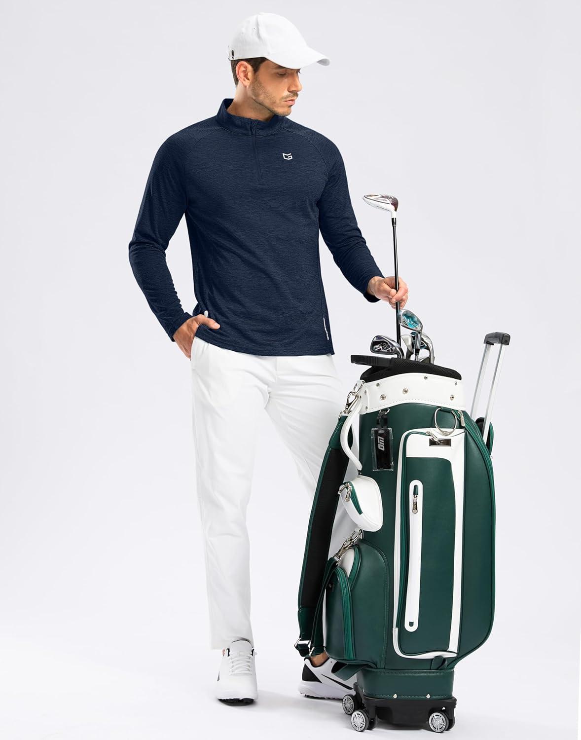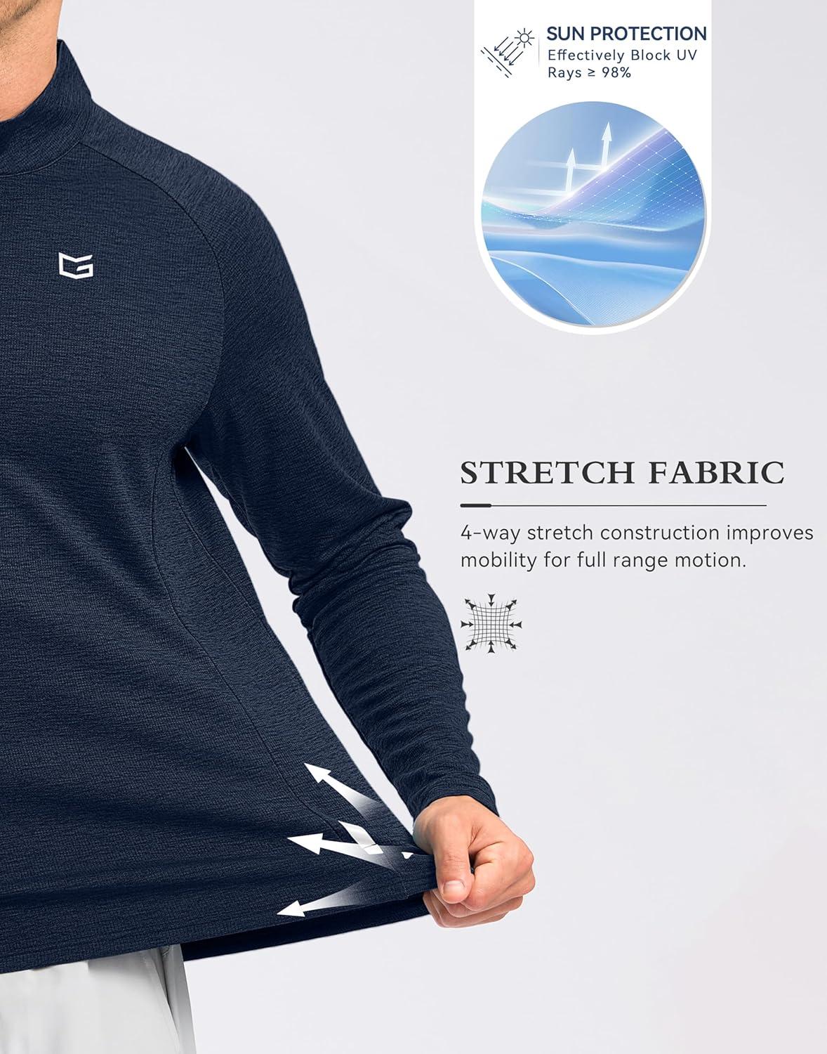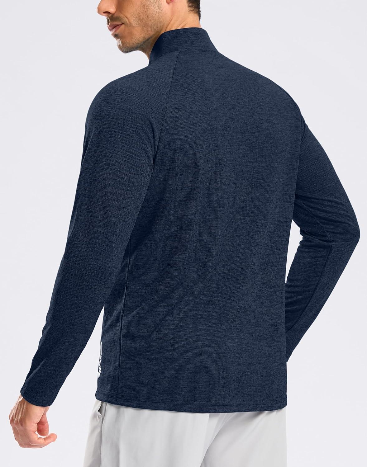 G Gradual Men’s Running Shirts Long Sleeve Athletic Shirt Lightweight Quick Dry Quarter Zip Pullover for Men Workout Gym Golf(Dark Blue Heather)