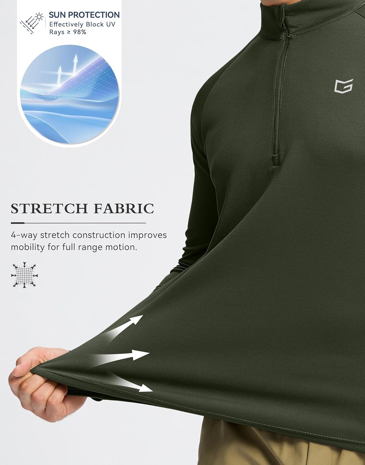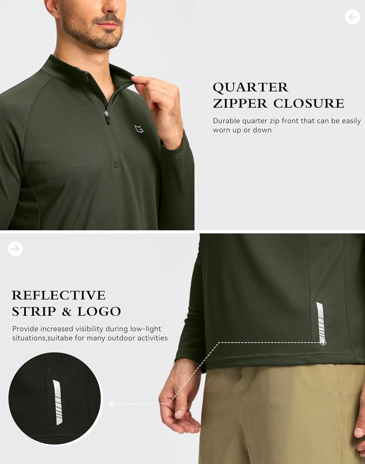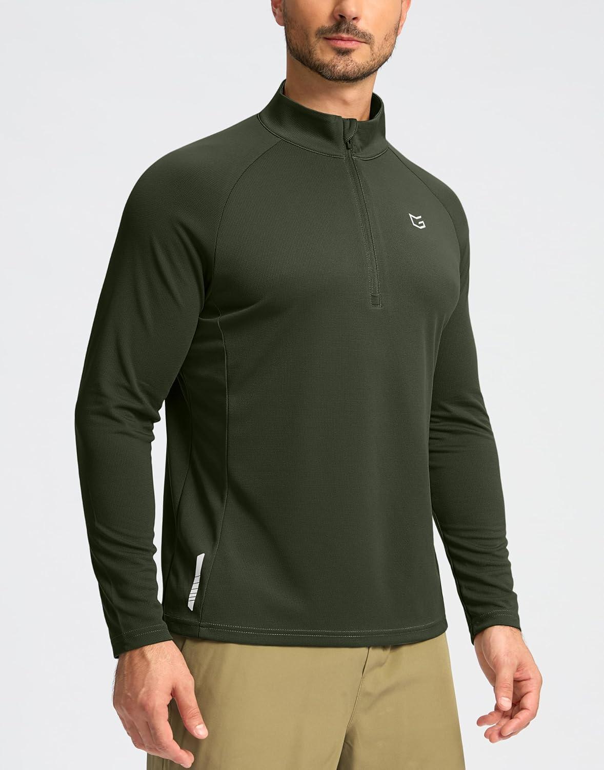 G Gradual Men’s Running Shirts Long Sleeve Athletic Shirt Lightweight Quick Dry Quarter Zip Pullover for Men Workout Gym Golf(Olive)
