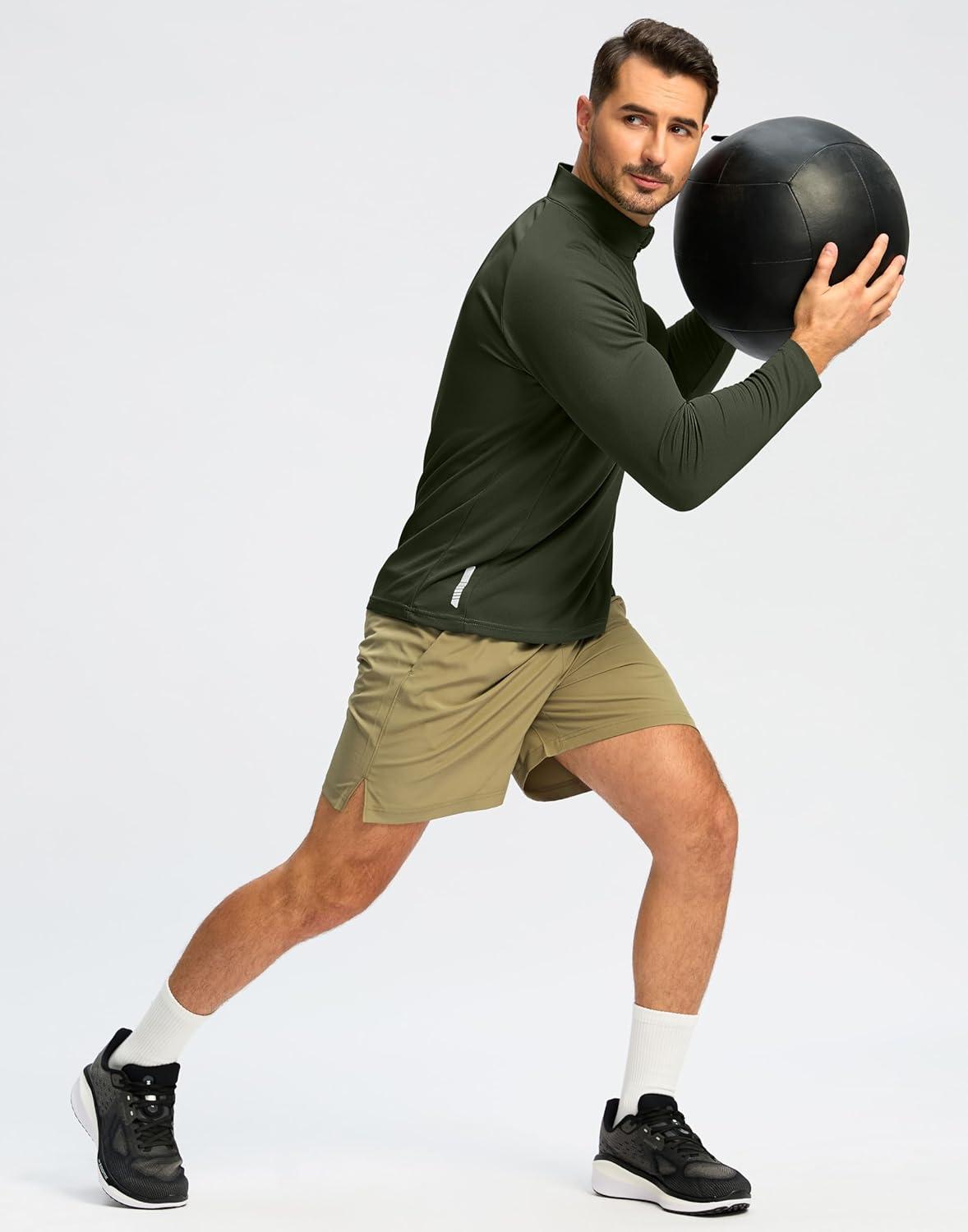 G Gradual Men's Running Shirts Long Sleeve Athletic Shirt Lightweight Quick Dry Quarter Zip Pullover for Men Workout Gym Golf(Olive)