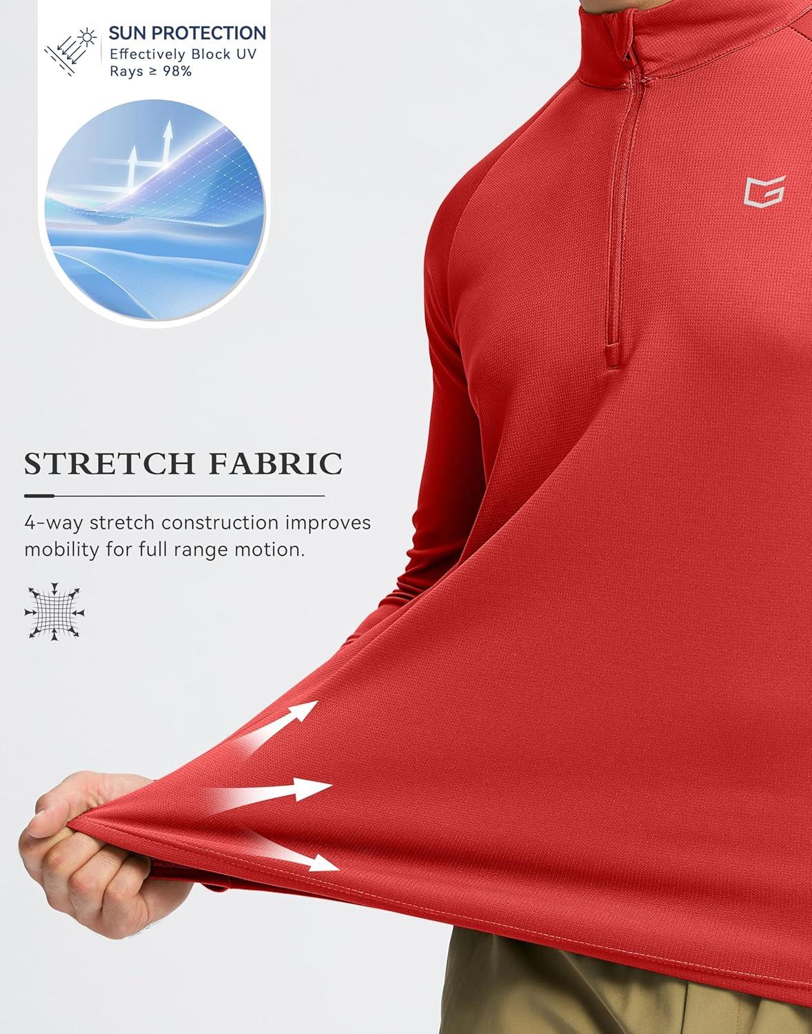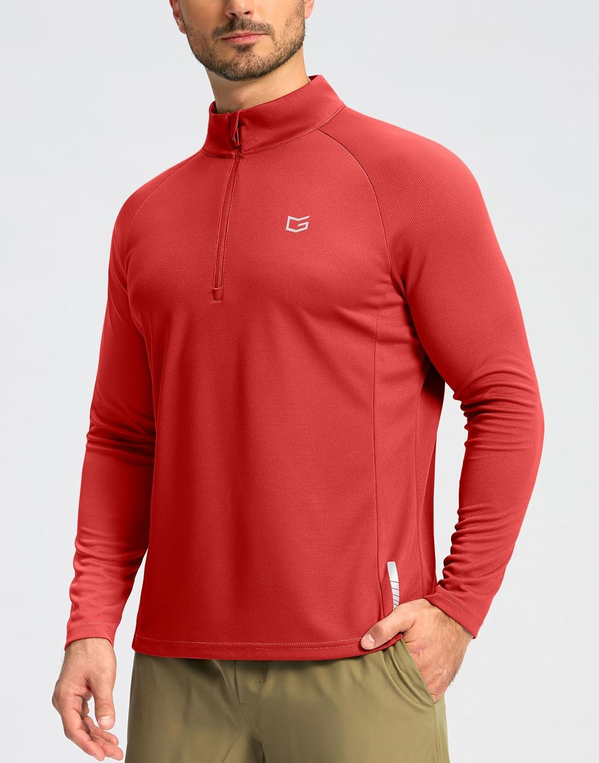 G Gradual Men’s Running Shirts Long Sleeve Athletic Shirt Lightweight Quick Dry Quarter Zip Pullover for Men Workout Gym Golf(Red)