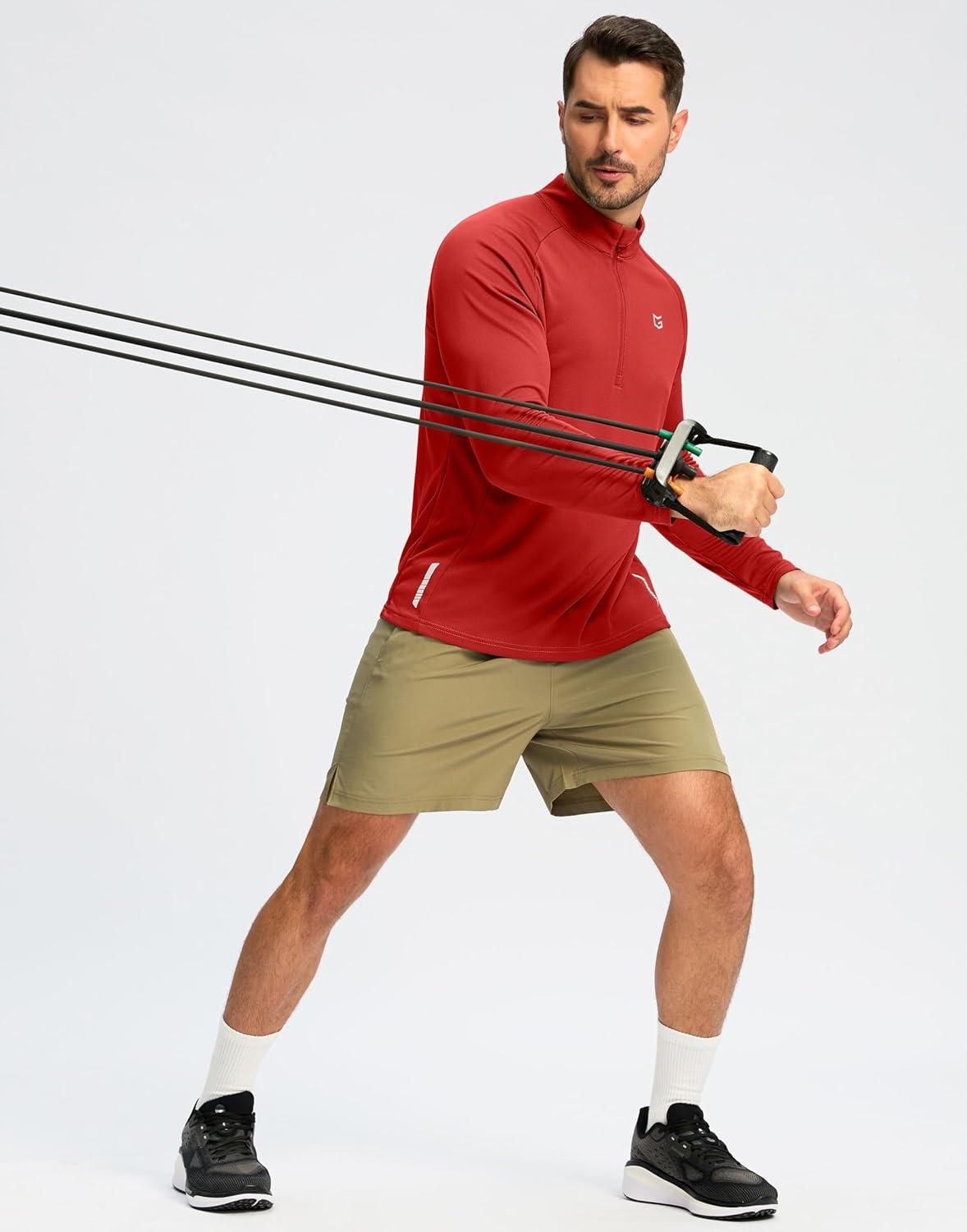 imageG Gradual Mens Running Shirts Long Sleeve Athletic Shirt Lightweight Quick Dry Quarter Zip Pullover for Men Workout Gym GolfRed