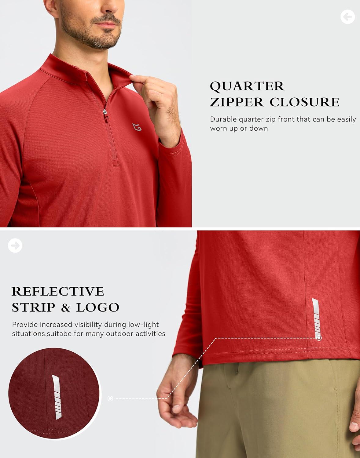 G Gradual Men's Running Shirts Long Sleeve Athletic Shirt Lightweight Quick Dry Quarter Zip Pullover for Men Workout Gym Golf(Red)