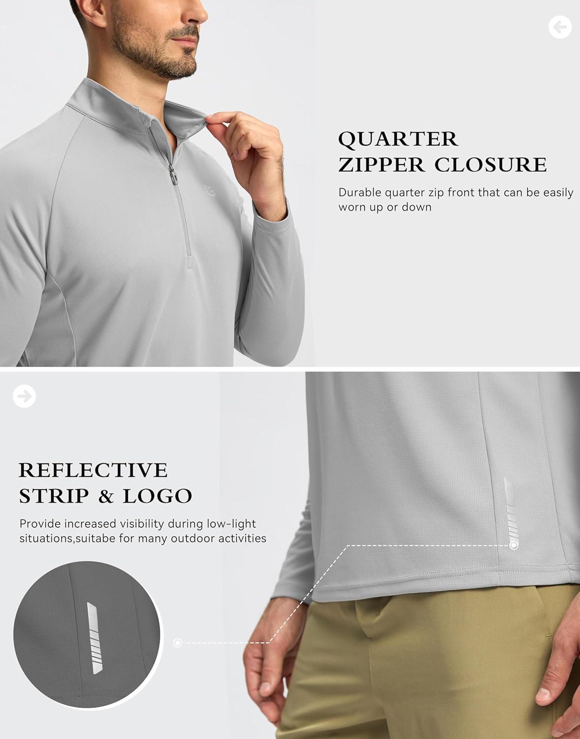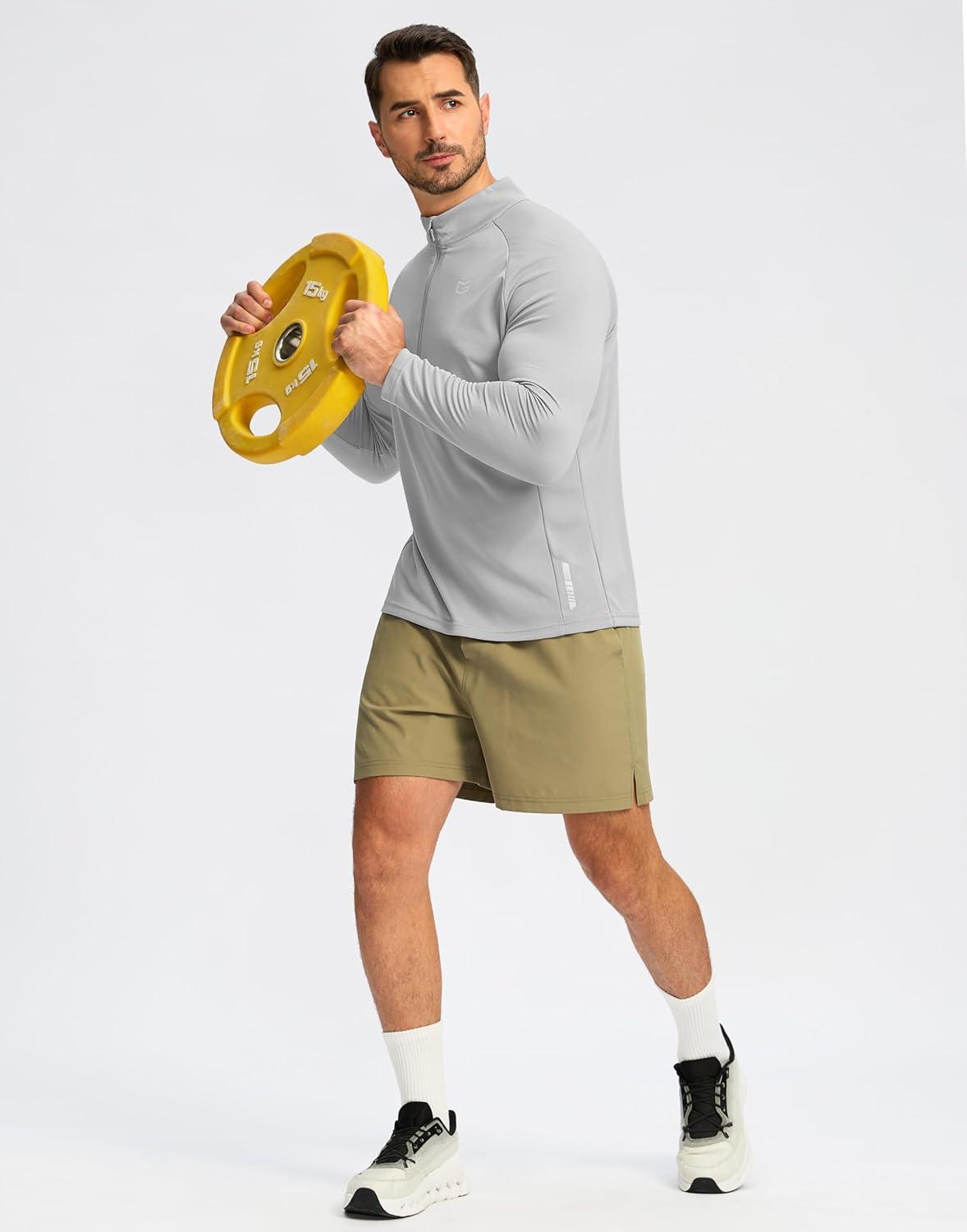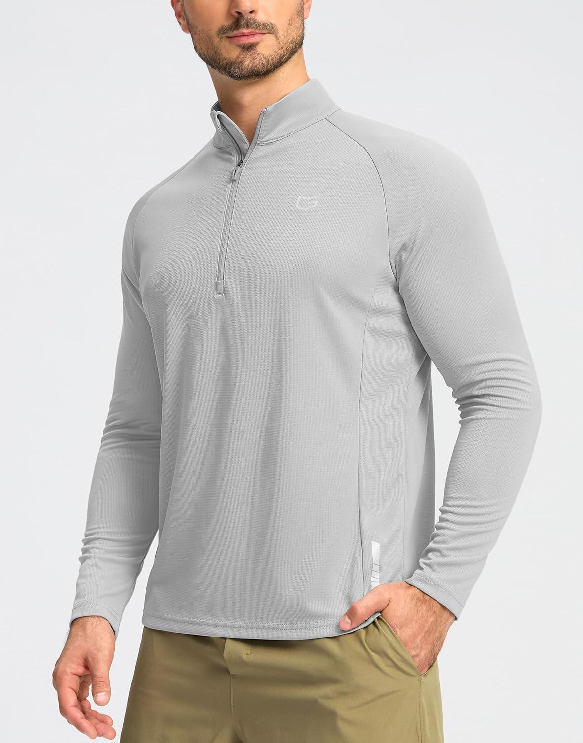 G Gradual Men’s Running Shirts Long Sleeve Athletic Shirt Lightweight Quick Dry Quarter Zip Pullover for Men Workout Gym Golf(Silver)
