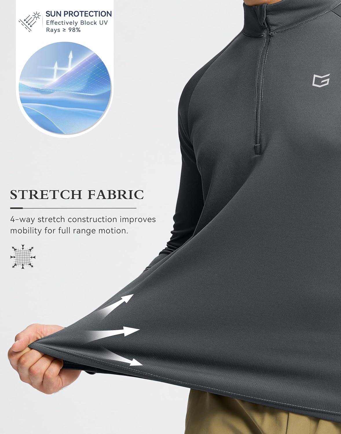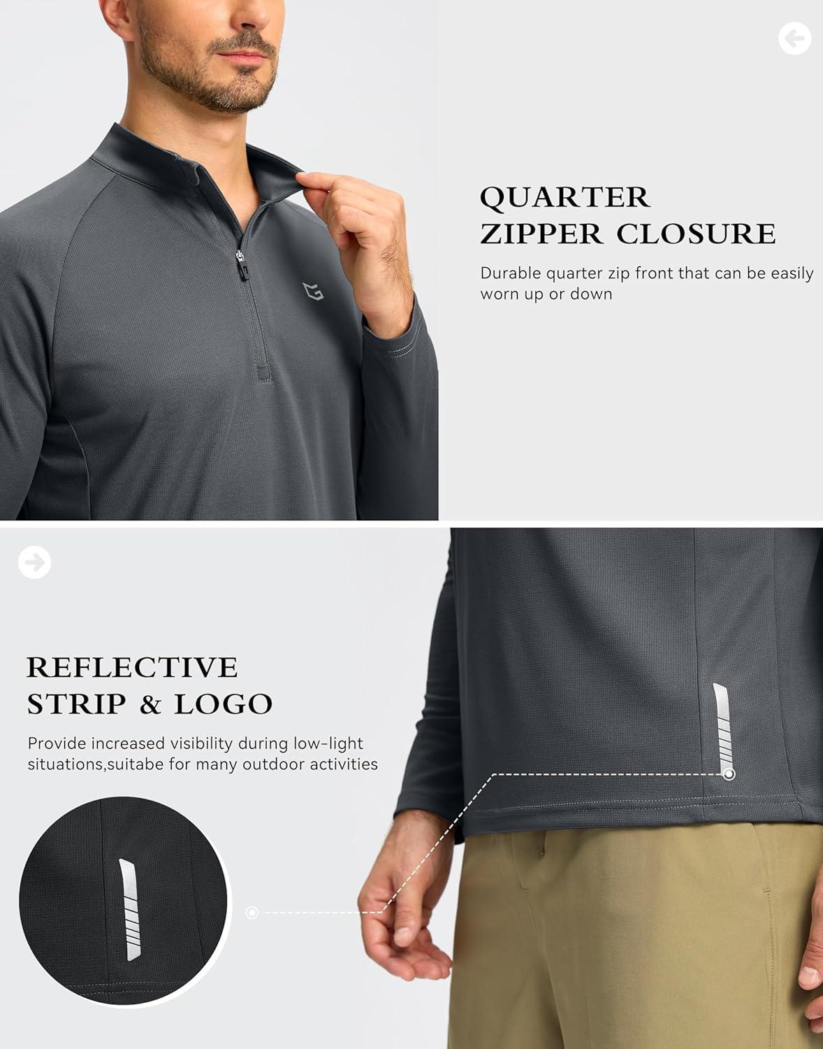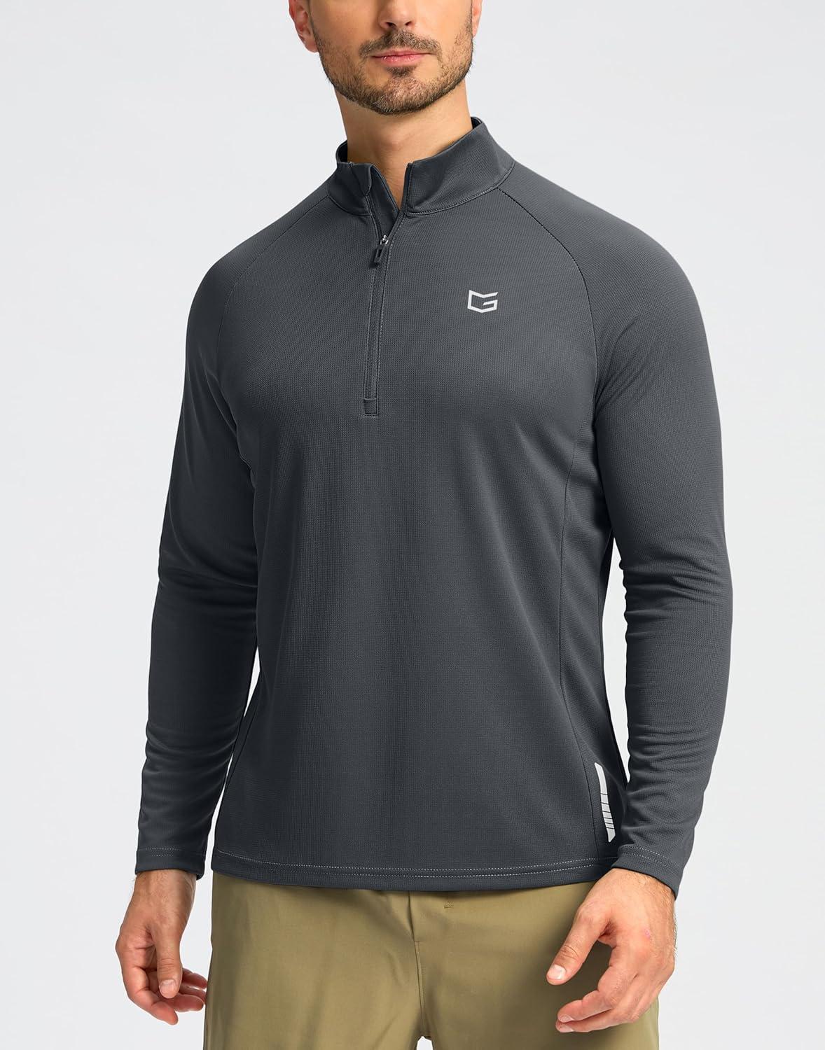 G Gradual Men’s Running Shirts Long Sleeve Athletic Shirt Lightweight Quick Dry Quarter Zip Pullover for Men Workout Gym Golf(Smoke Grey)