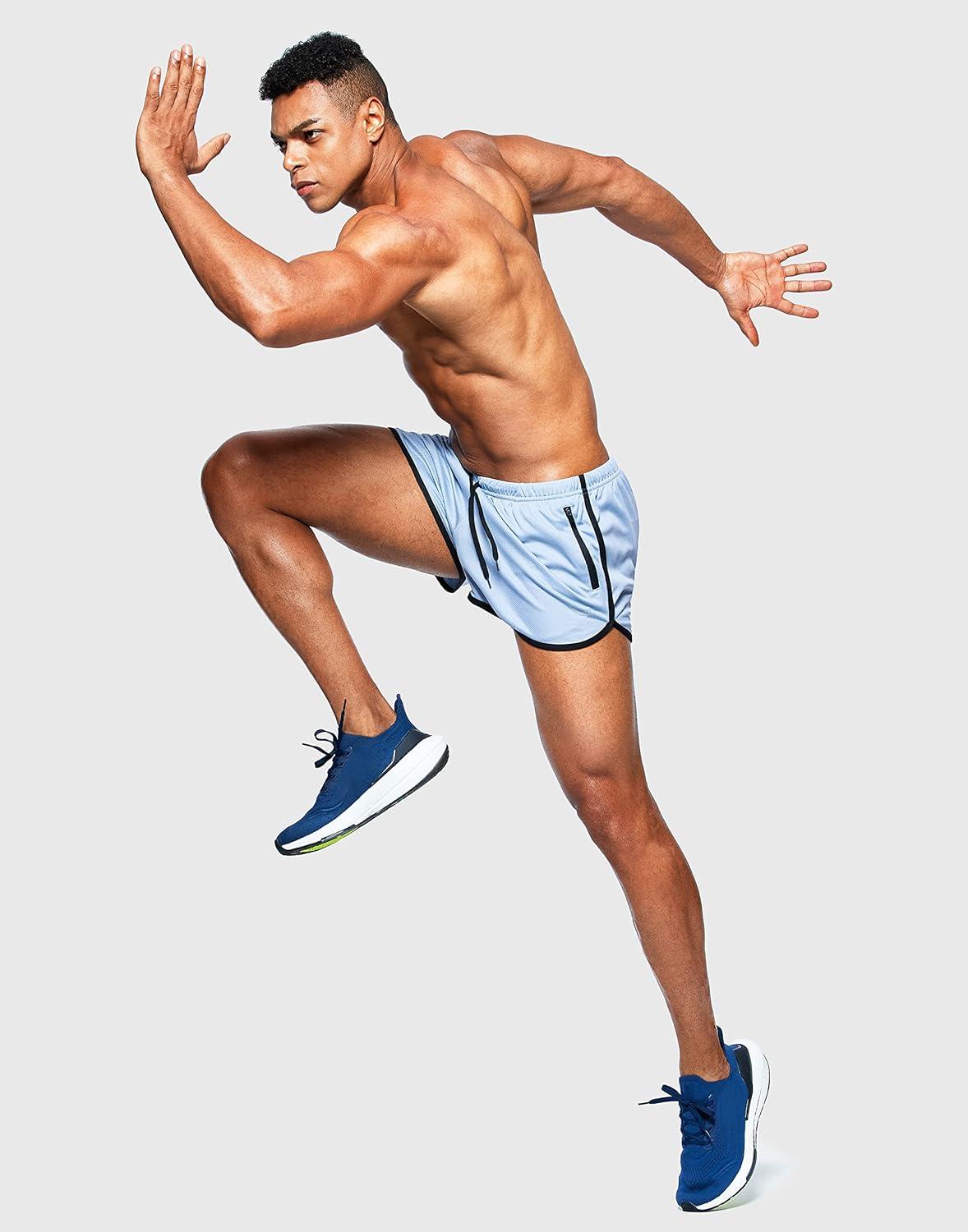 G Gradual Men's Running Shorts 3 Inch Quick Dry Gym Athletic Jogging Shorts with Zipper Pockets(Light Blue)