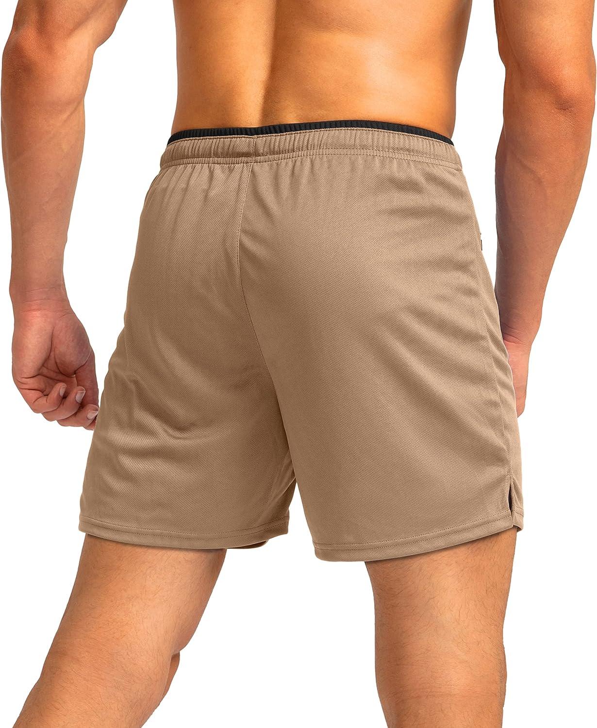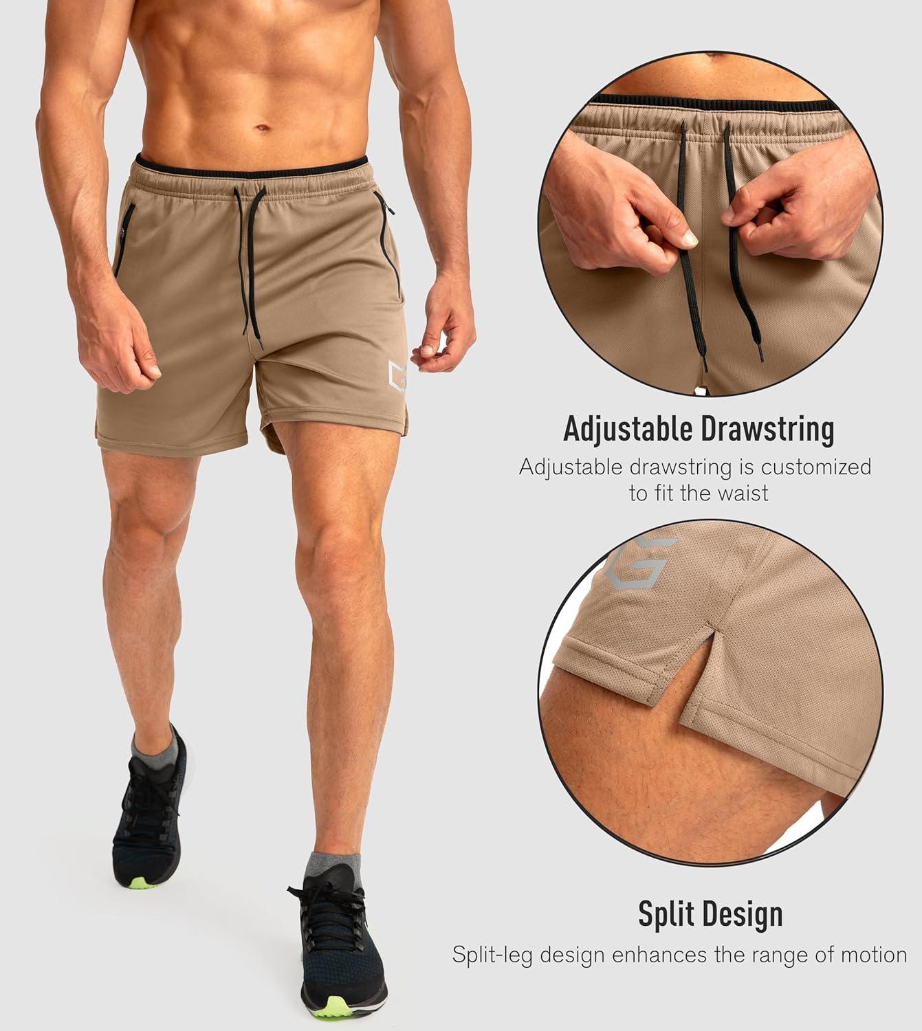 G Gradual Men's Running Shorts with Zipper Pockets Quick Dry Gym Athletic Workout 5" Shorts for Men(Khaki)