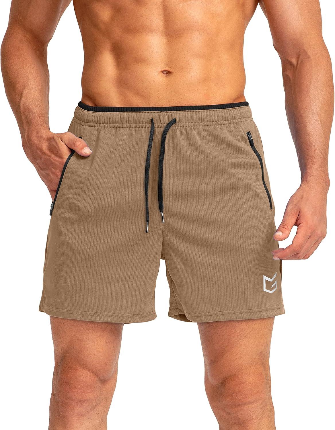 G Gradual Men’s Running Shorts with Zipper Pockets Quick Dry Gym Athletic Workout 5″ Shorts for Men(Khaki)