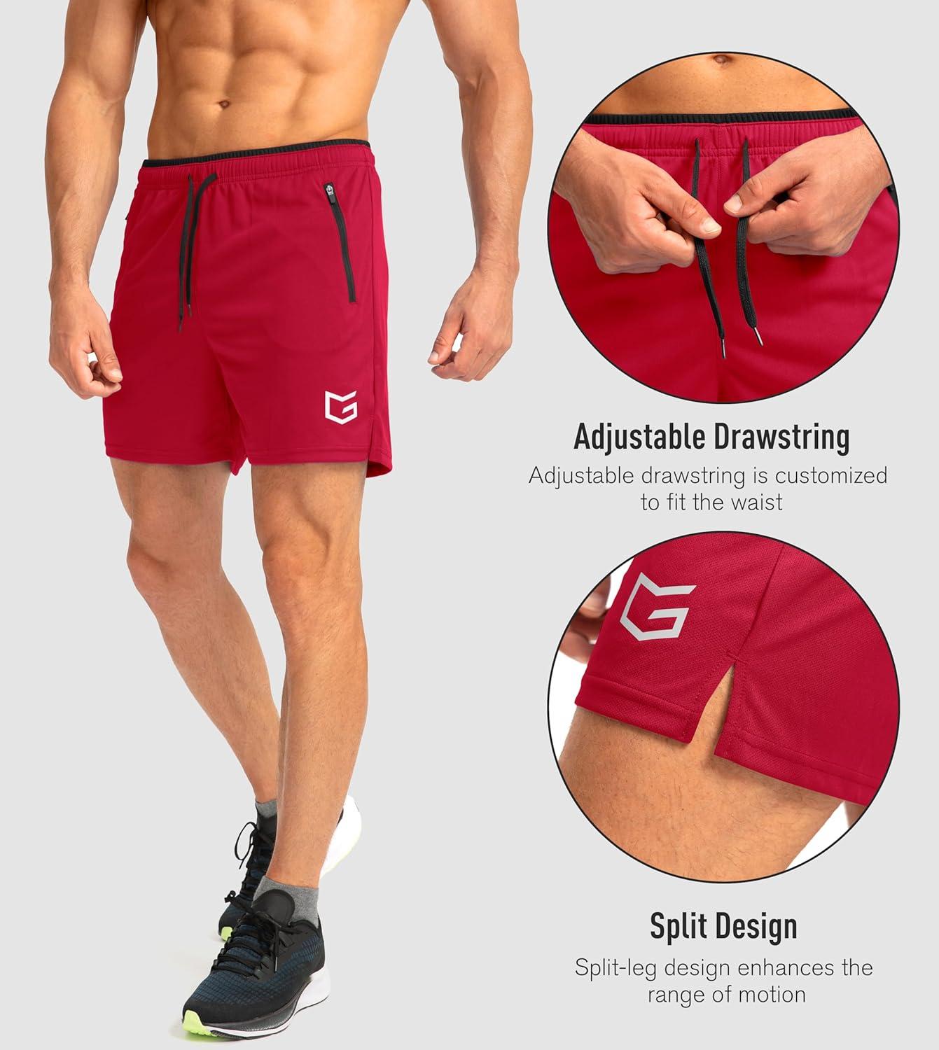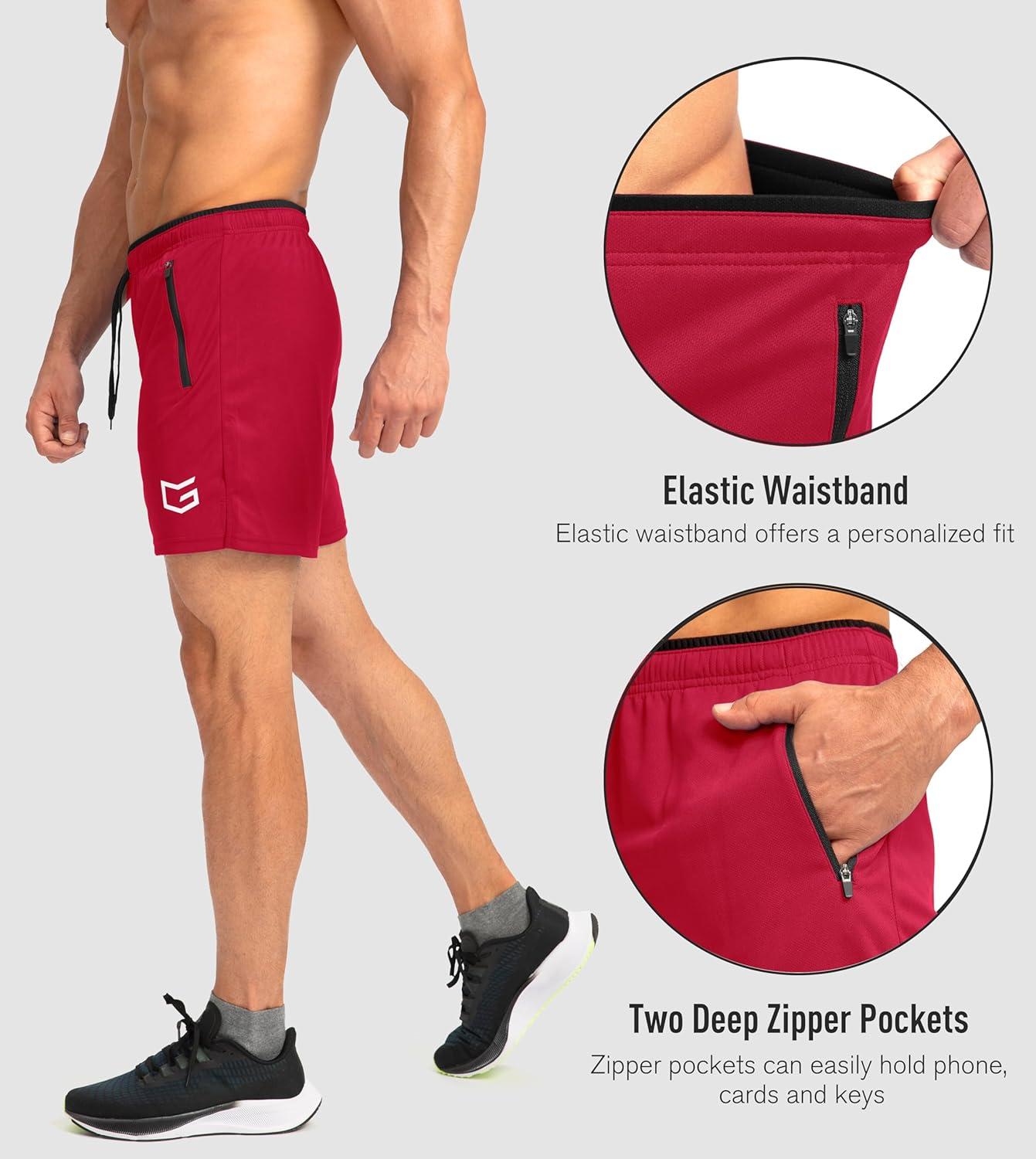 imageG Gradual Mens Running Shorts with Zipper Pockets Quick Dry Gym Athletic Workout 5quot Shorts for MenRed
