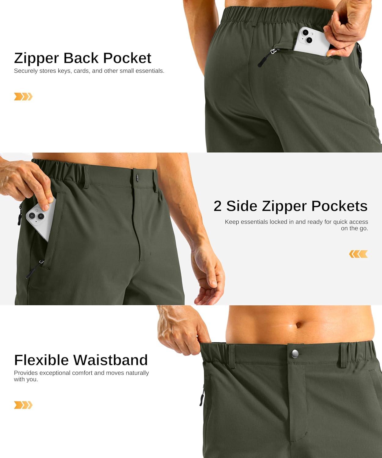 G GRADUAL Men's Shorts 11" Lightweight Casual Golf Shorts for Men Hiking Work Outdoor Stretch Quick-Dry with 3 Zipper Pockets(Army Green)