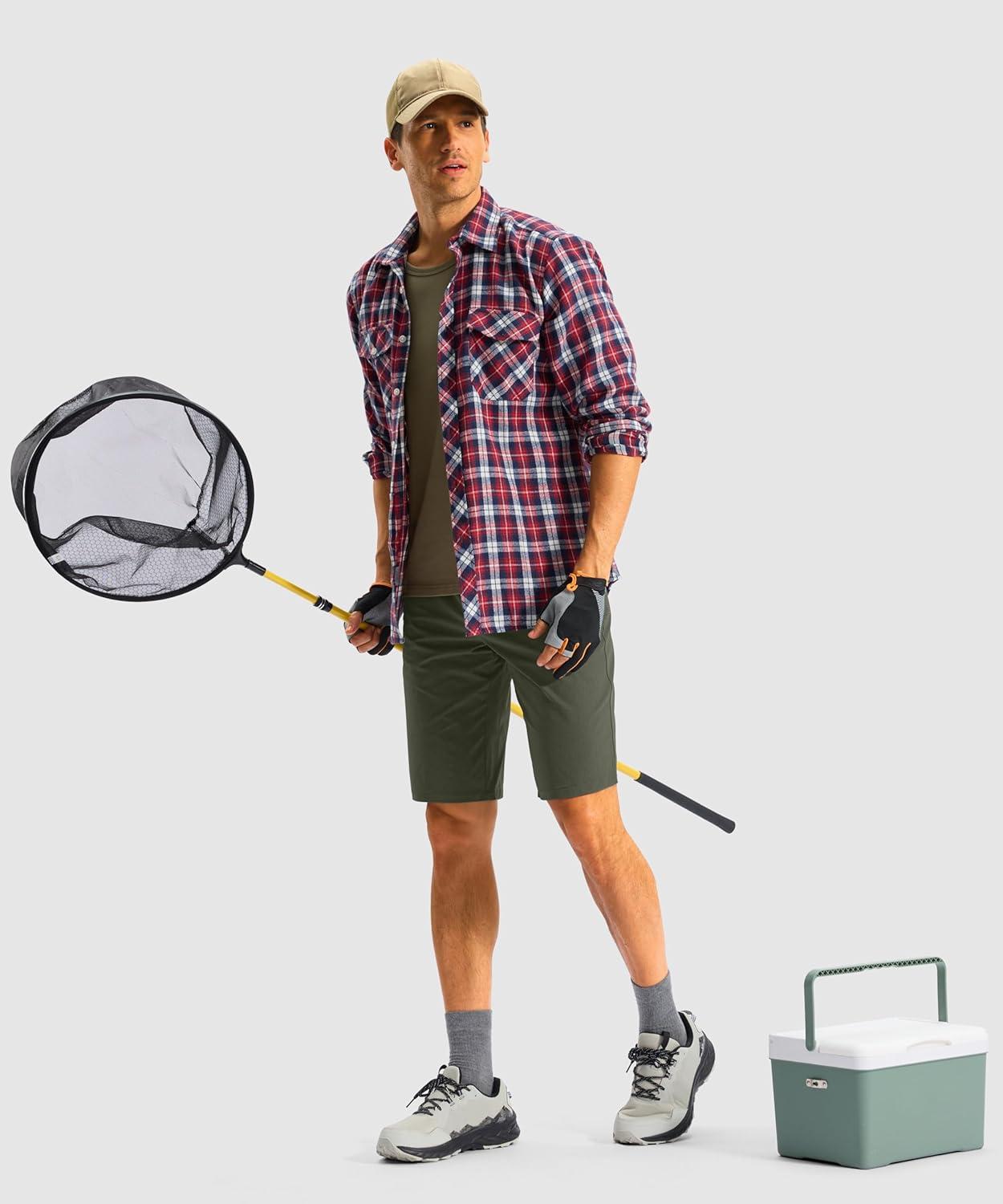 G GRADUAL Men’s Shorts 11″ Lightweight Casual Golf Shorts for Men Hiking Work Outdoor Stretch Quick-Dry with 3 Zipper Pockets(Army Green)