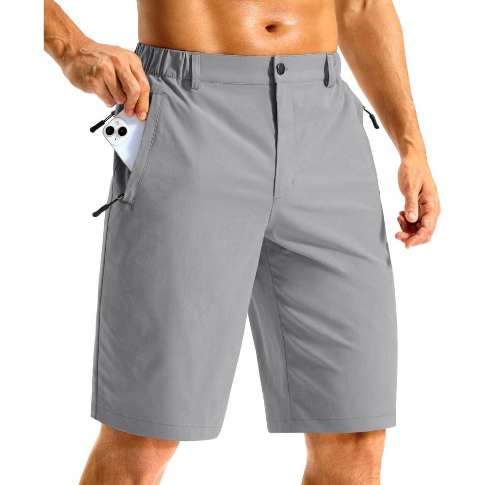 G GRADUAL Men’s Shorts 11″ Lightweight Casual Golf Shorts for Men Hiking Work Outdoor Stretch Quick-Dry with 3 Zipper Pockets(Light Grey)