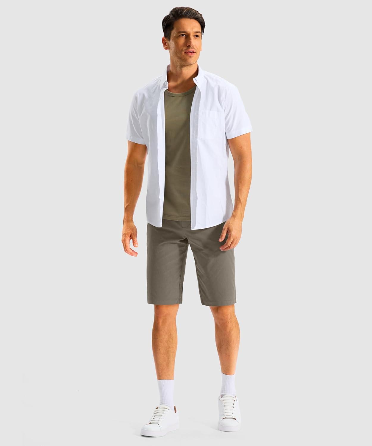 G GRADUAL Men’s Shorts 11″ Lightweight Casual Golf Shorts for Men Hiking Work Outdoor Stretch Quick-Dry with 3 Zipper Pockets(White)