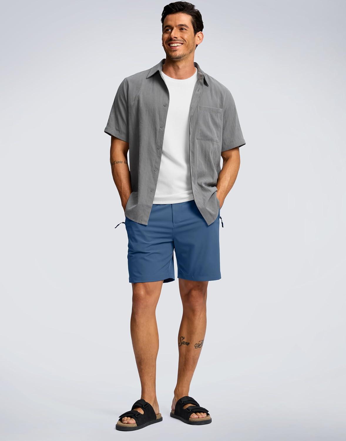 G Gradual Men’s Shorts 7″/ 5″/ 9″ Lightewight Casual Shorts for Men Hiking Golf Shorts with 3 Zipper Pockets(Blue)