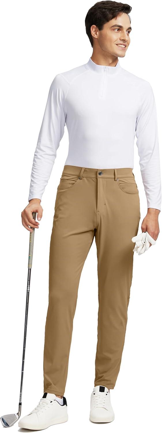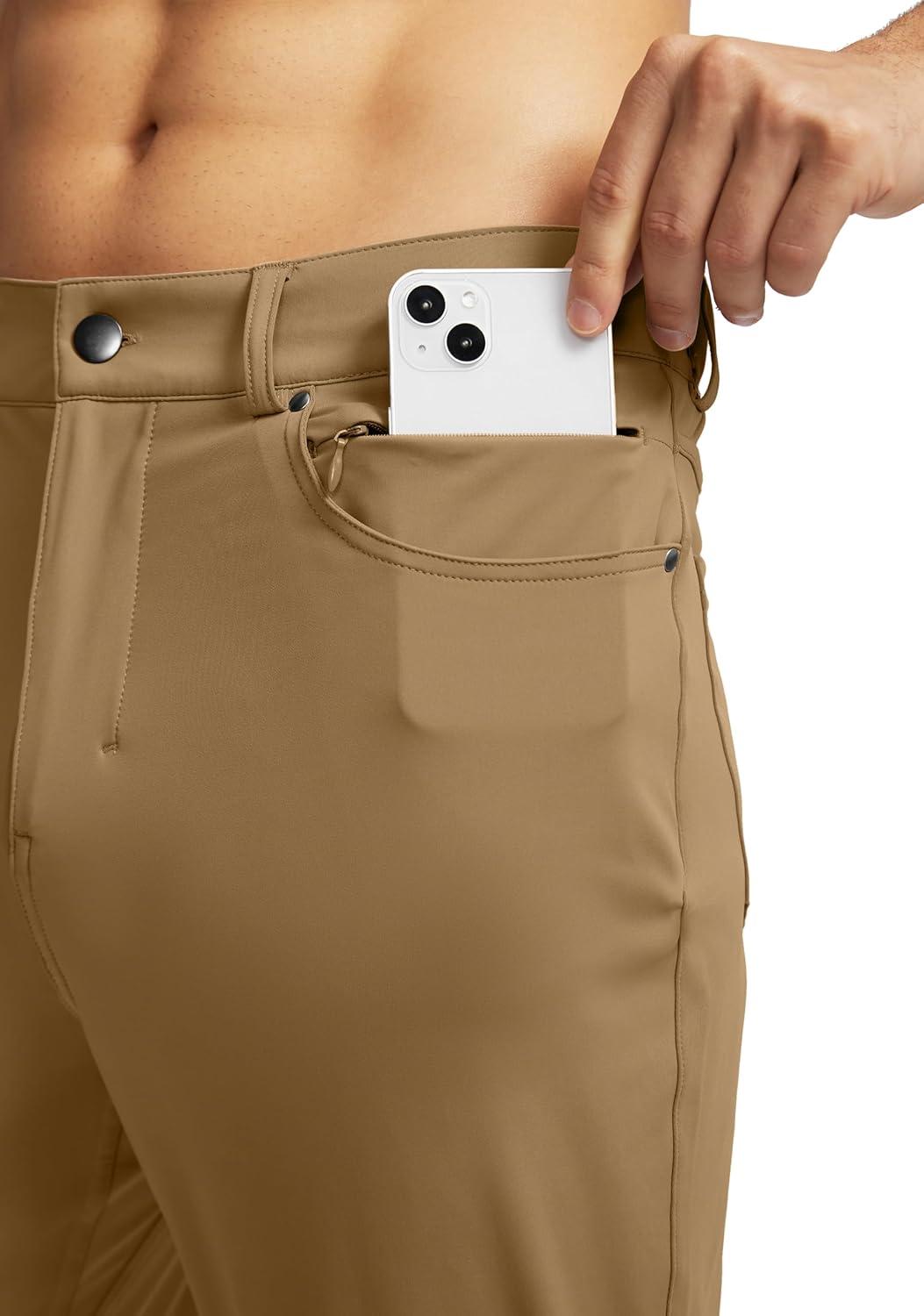 G Gradual Men's Stretch Golf Pants with 6 Pockets Slim Fit Dress Pants for Men Travel Casual Work(Dark Khaki)