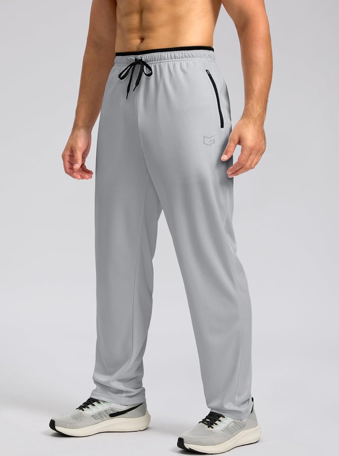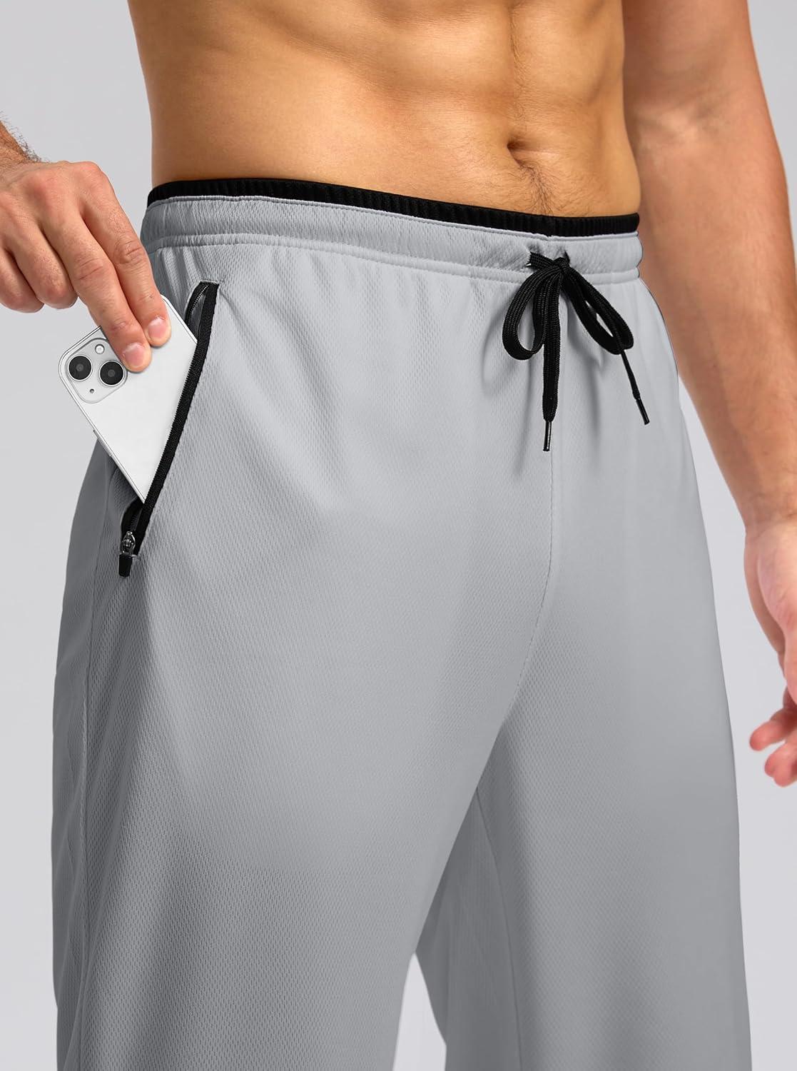 G Gradual Men’s Sweatpants Mesh Lightweight with Zip Pockets Breathable Quick Dry Athletic Pants for Workout Running(02-light Grey)