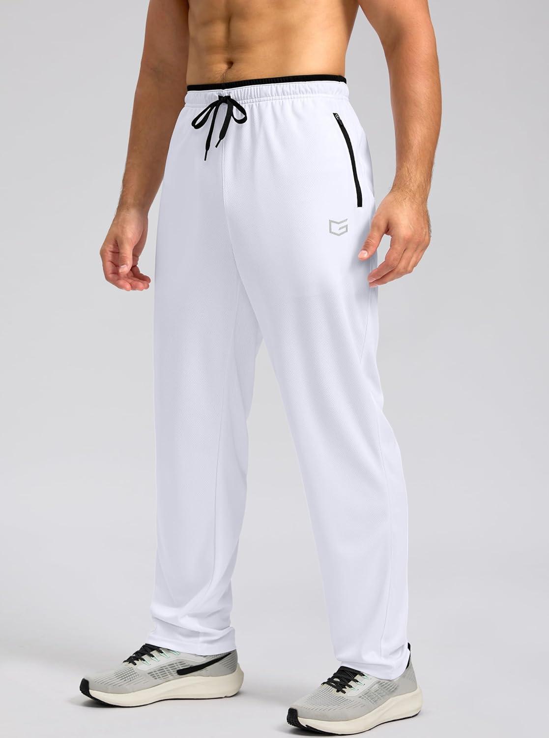 G Gradual Men’s Sweatpants Mesh Lightweight with Zip Pockets Breathable Quick Dry Athletic Pants for Workout Running(02-white)