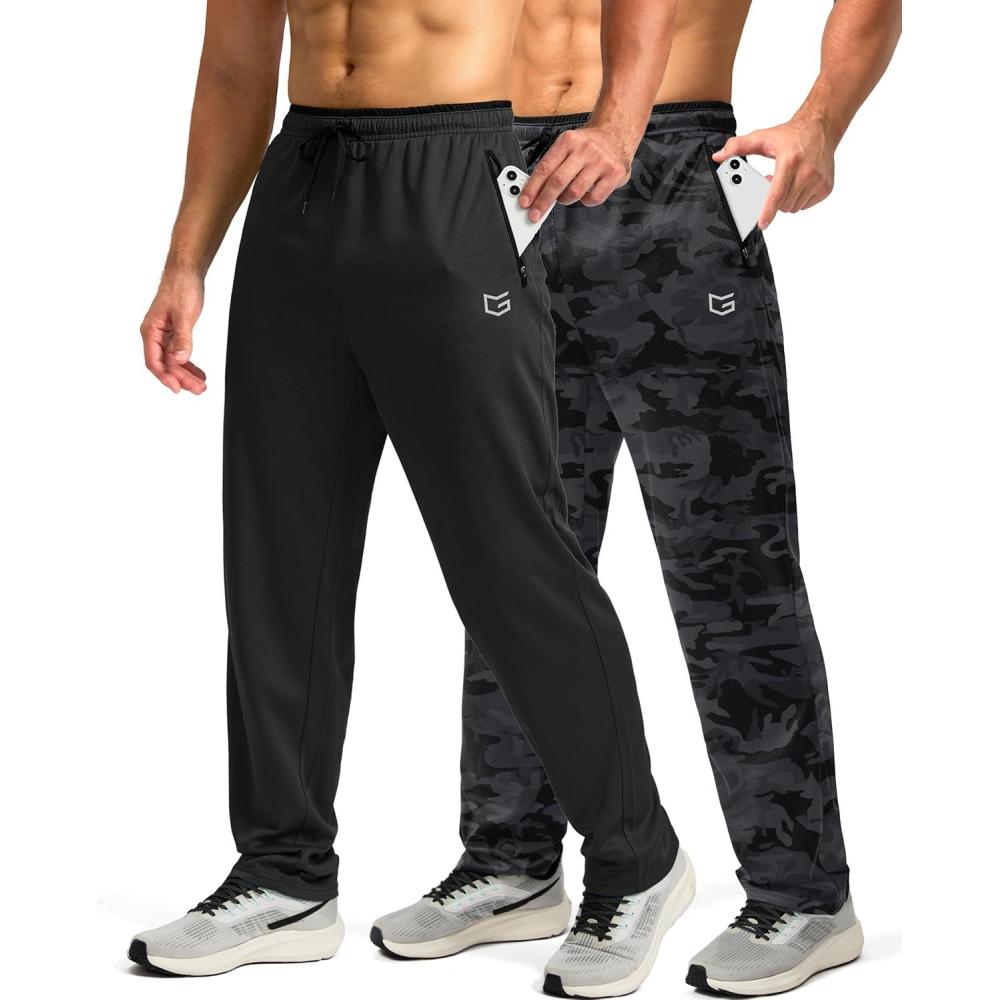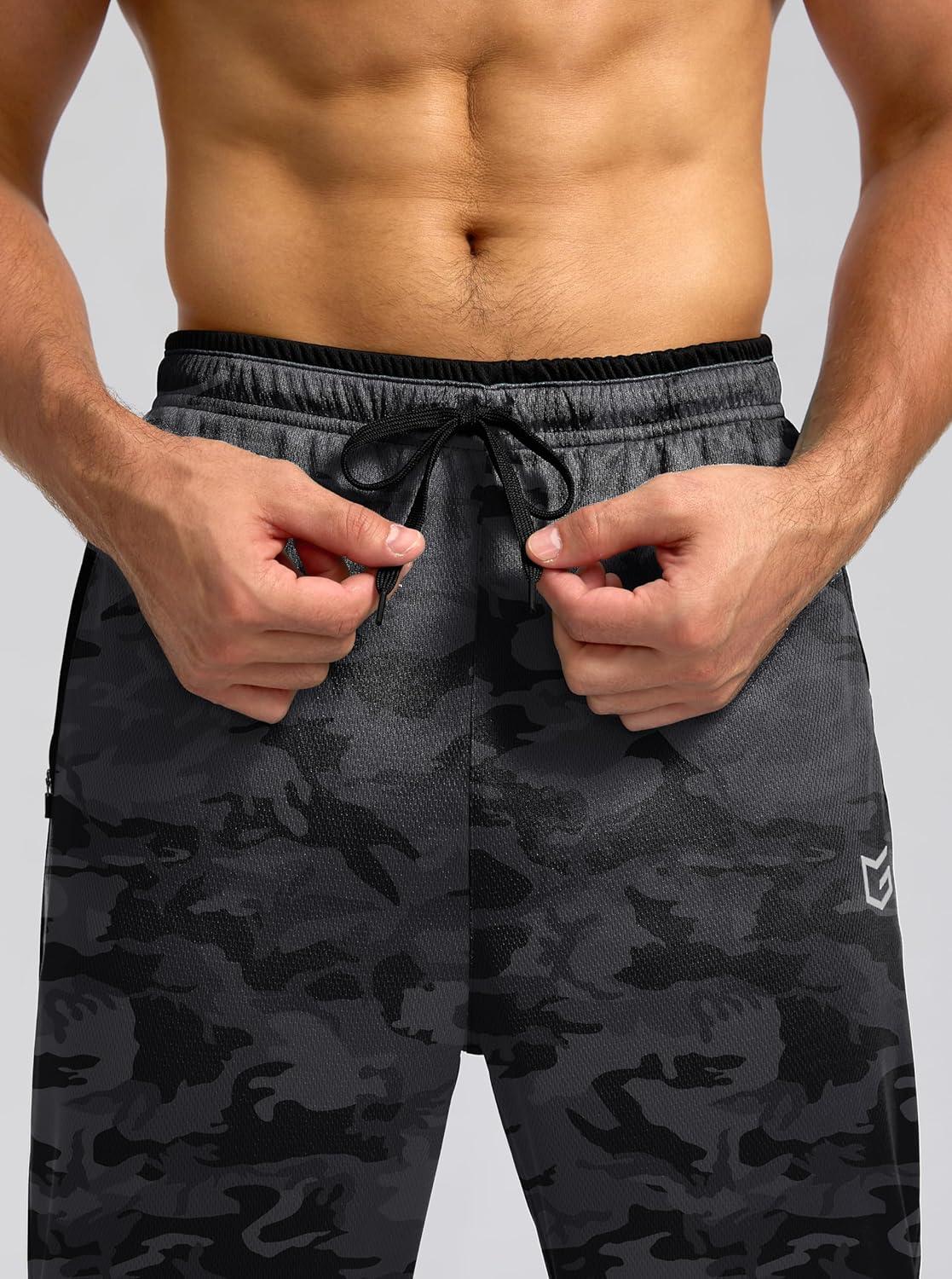 G Gradual Men’s Sweatpants Mesh Lightweight with Zip Pockets Breathable Quick Dry Athletic Pants for Workout Running(2psc: Blackcamo / 02black)