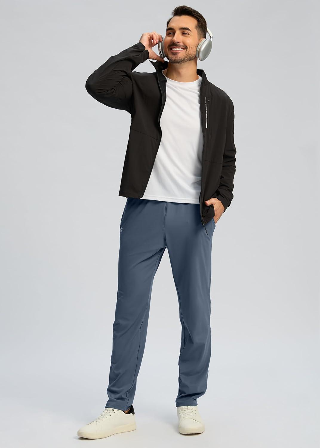 G Gradual Men's Sweatpants with Zipper Pocket Workout Athletic Track Pants Stretch Tapered Joggers for Gym Running Jogging(Dusty Blue)