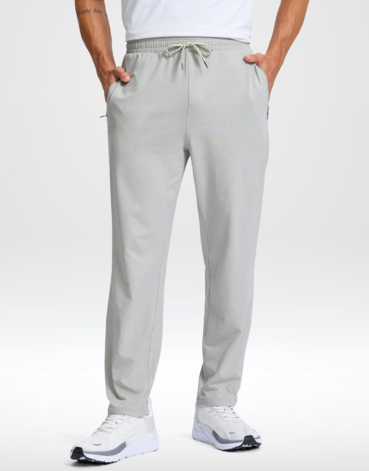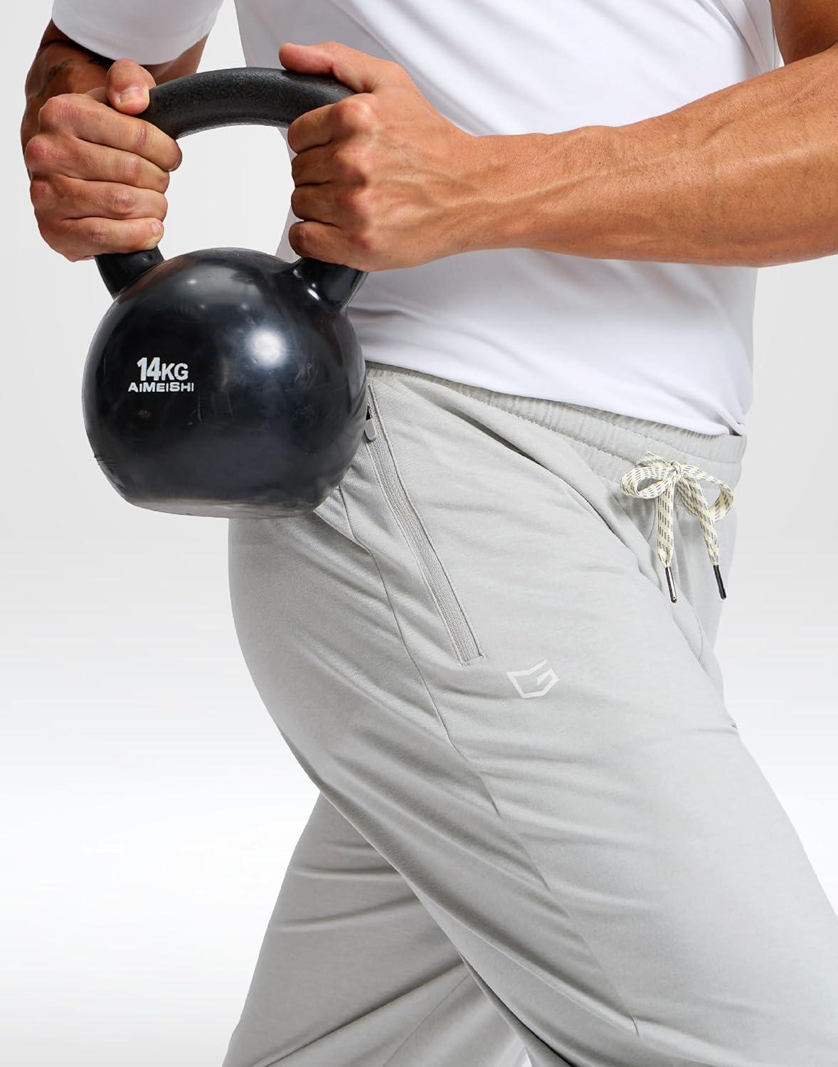 G Gradual Men’s Sweatpants with Zipper Pockets Lightweight Athletic Workout Pants Soft Casual Lounge Sweat Pants for Mens(Mineral Grey Heather / White)
