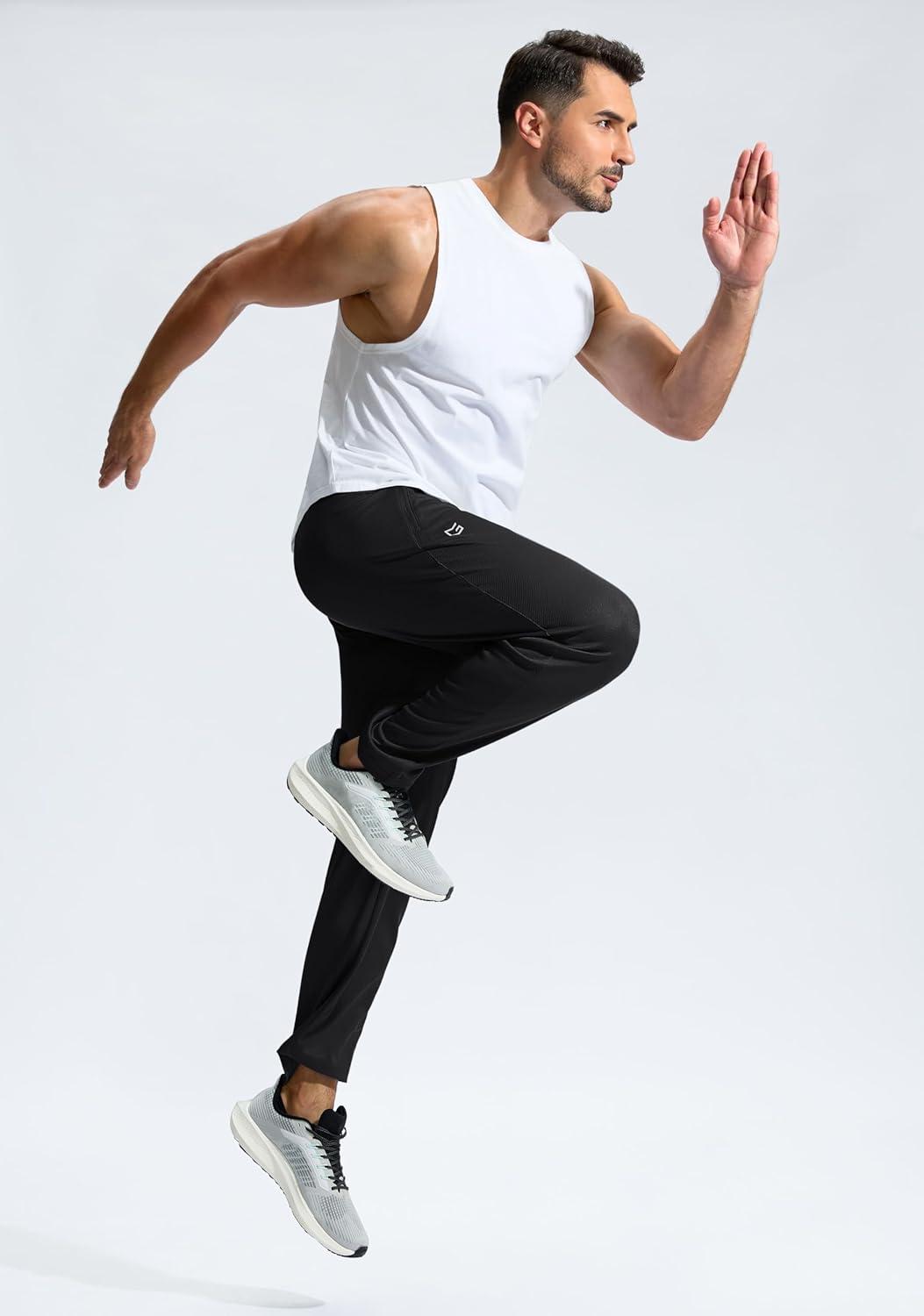 G Gradual Men’s Sweatpants with Zipper Pockets Lightweight Mesh Athletic Pants for Men Open Bottom Workout Gym Running(Black)