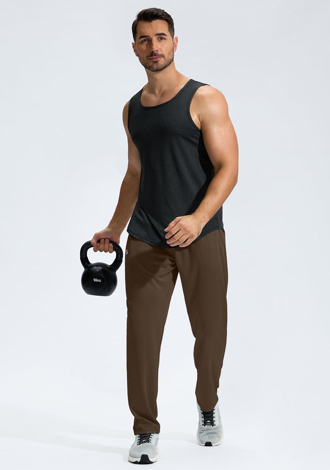 G Gradual Men’s Sweatpants with Zipper Pockets Lightweight Mesh Athletic Pants for Men Open Bottom Workout Gym Running(Brown)
