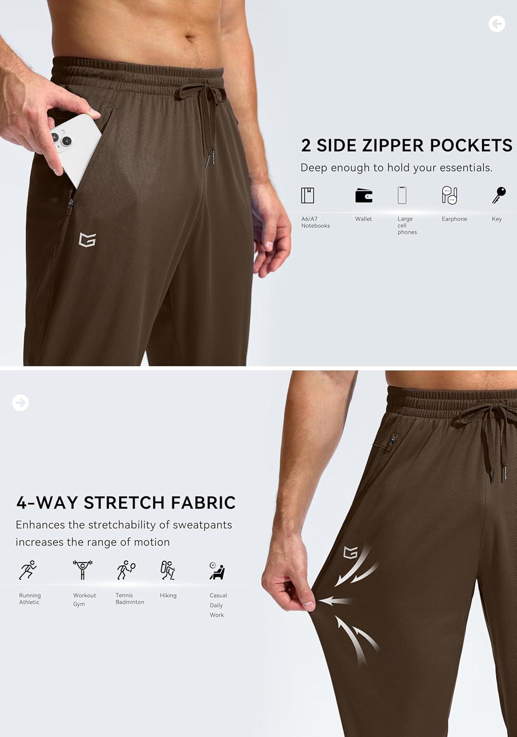 imageG Gradual Mens Sweatpants with Zipper Pockets Lightweight Mesh Athletic Pants for Men Open Bottom Workout Gym RunningBrown