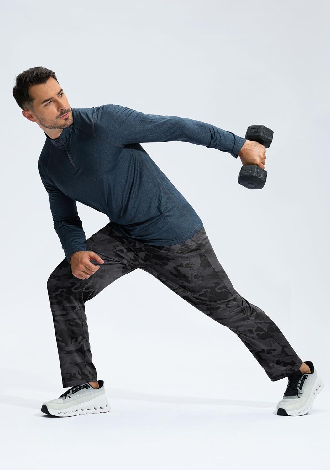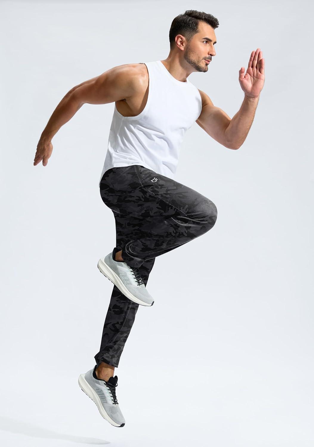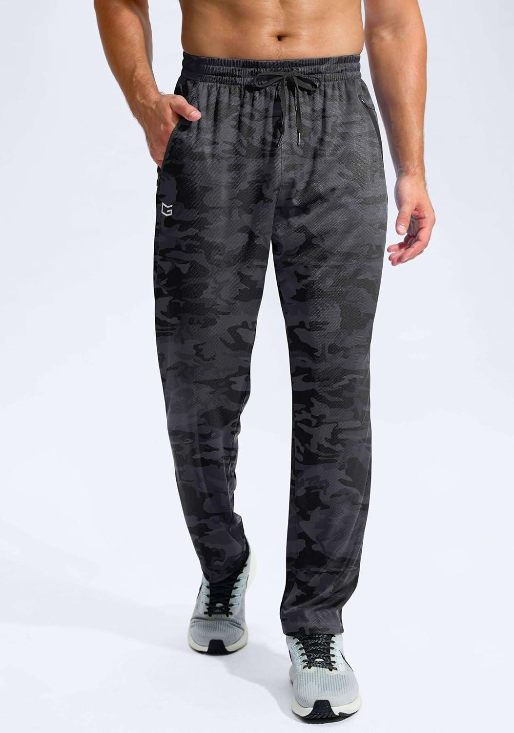 G Gradual Men's Sweatpants with Zipper Pockets Lightweight Mesh Athletic Pants for Men Open Bottom Workout Gym Running(Camo Black)