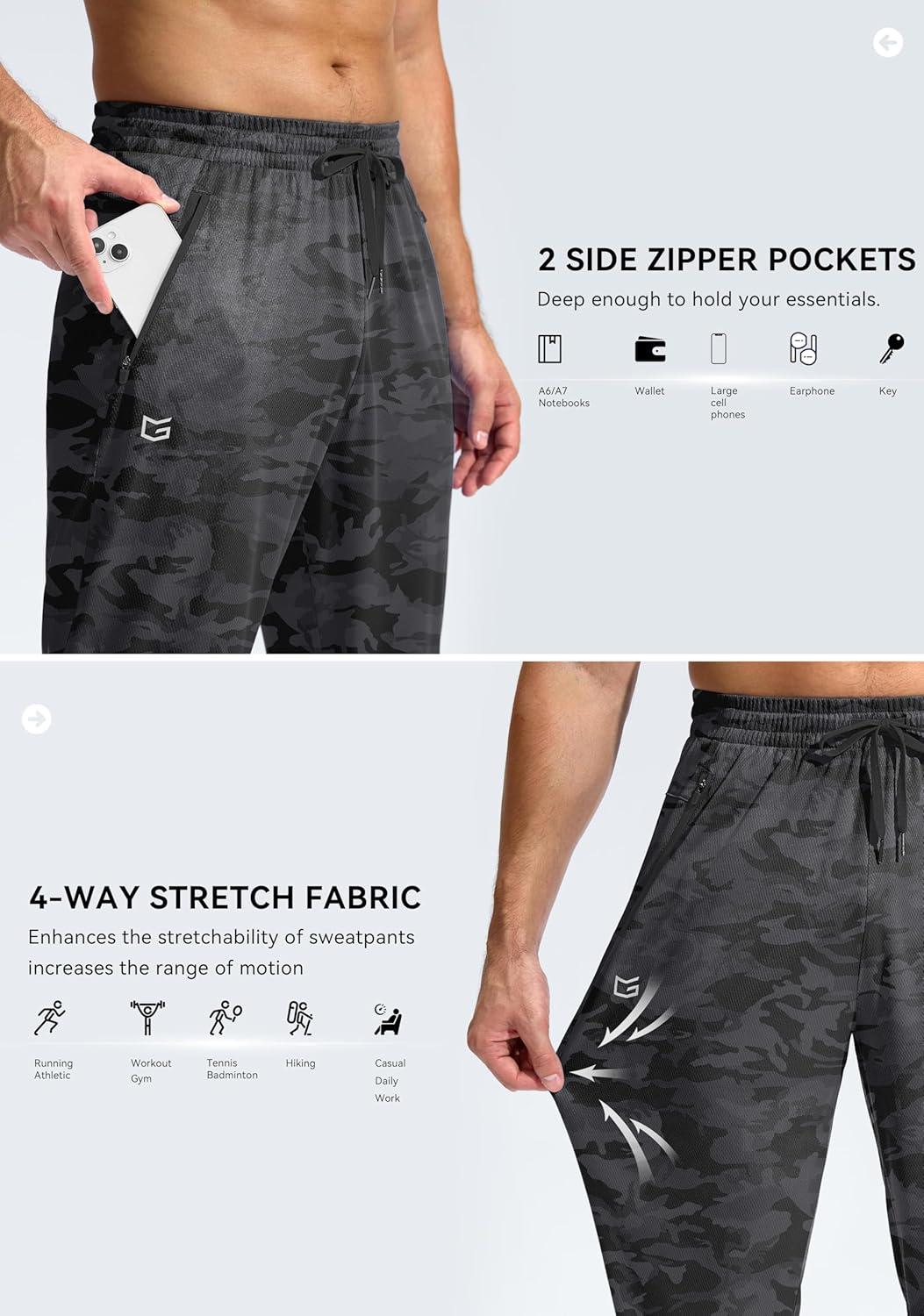 imageG Gradual Mens Sweatpants with Zipper Pockets Lightweight Mesh Athletic Pants for Men Open Bottom Workout Gym RunningCamo Black