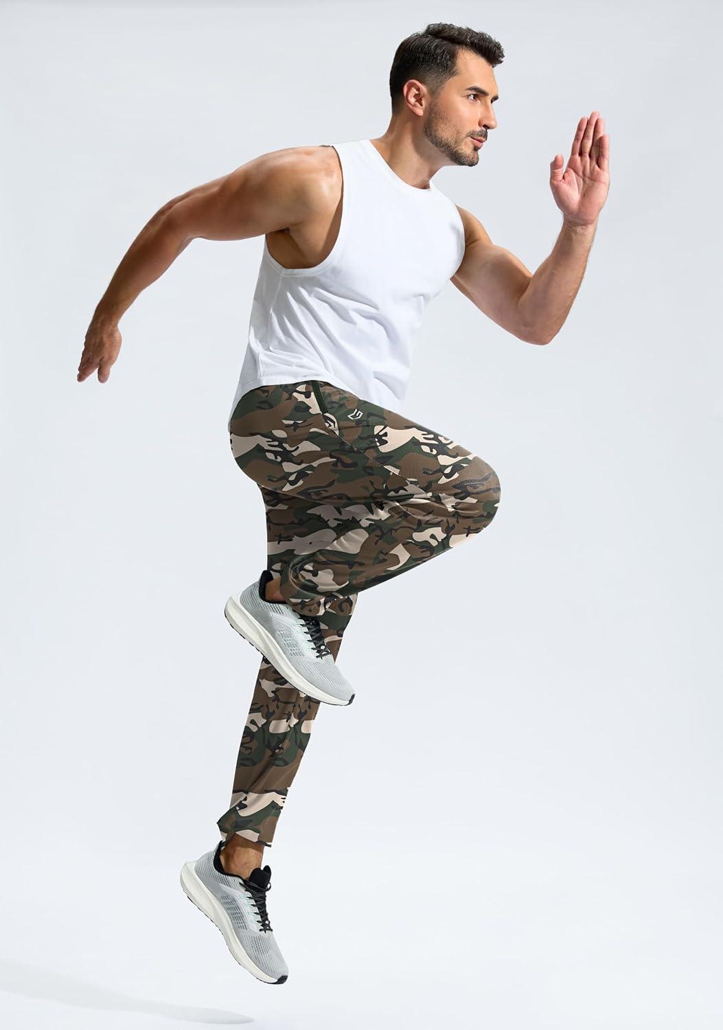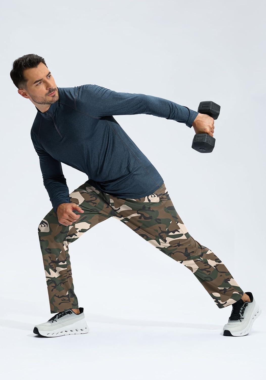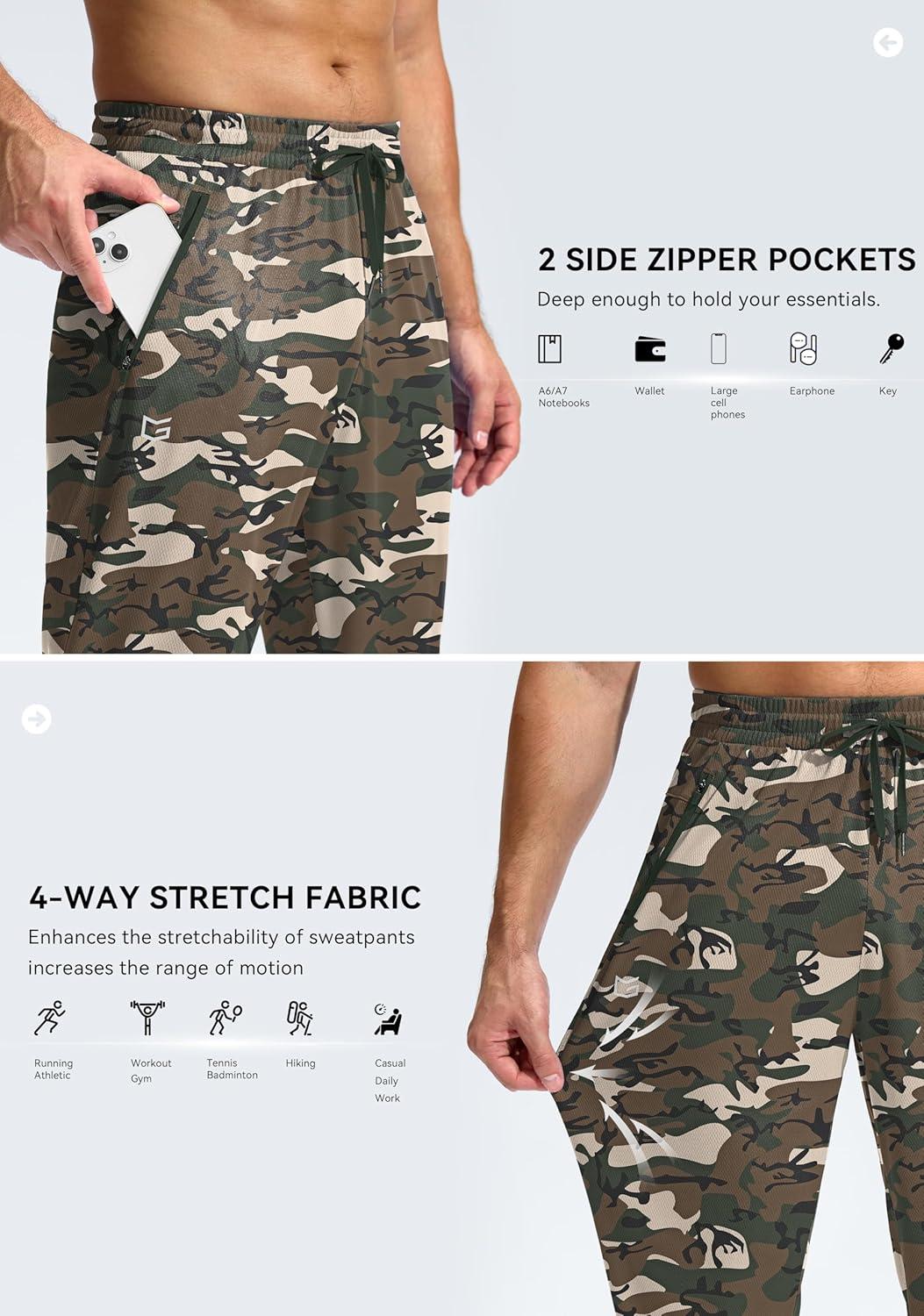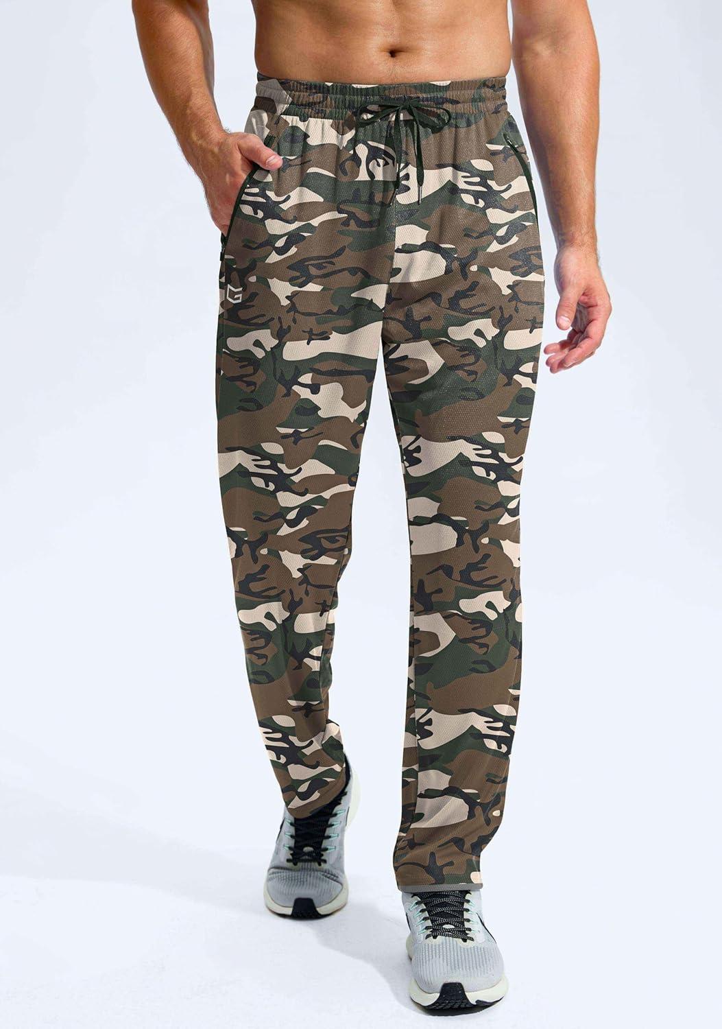 G Gradual Men's Sweatpants with Zipper Pockets Lightweight Mesh Athletic Pants for Men Open Bottom Workout Gym Running(Green Camo)