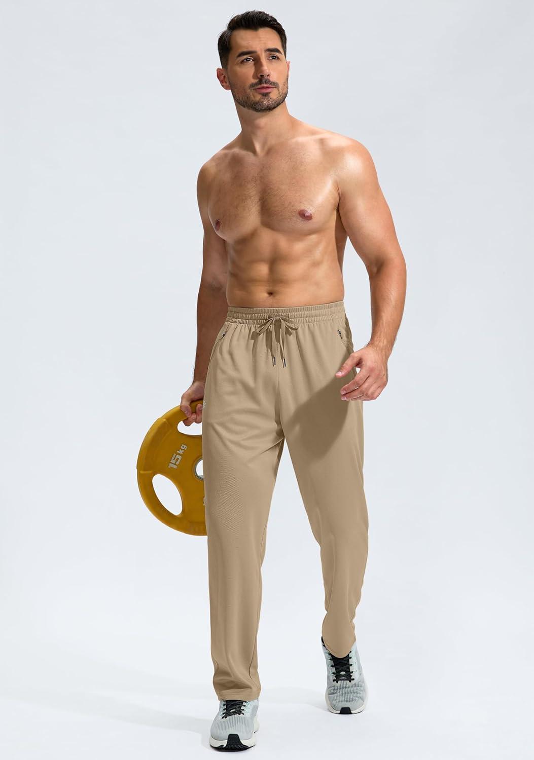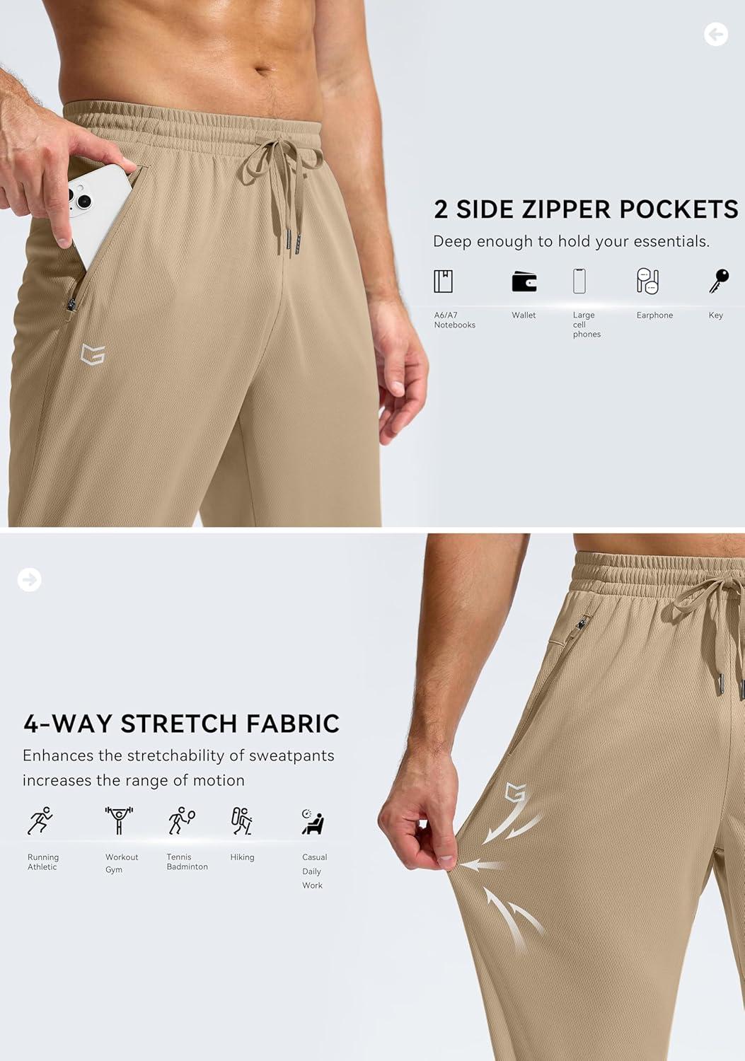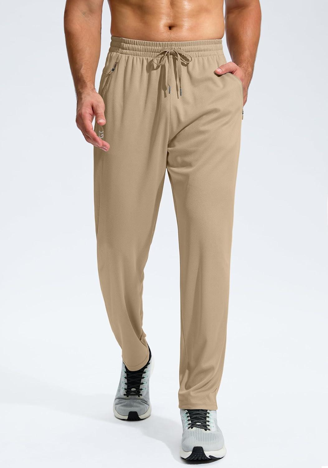 G Gradual Men's Sweatpants with Zipper Pockets Lightweight Mesh Athletic Pants for Men Open Bottom Workout Gym Running(Khaki)