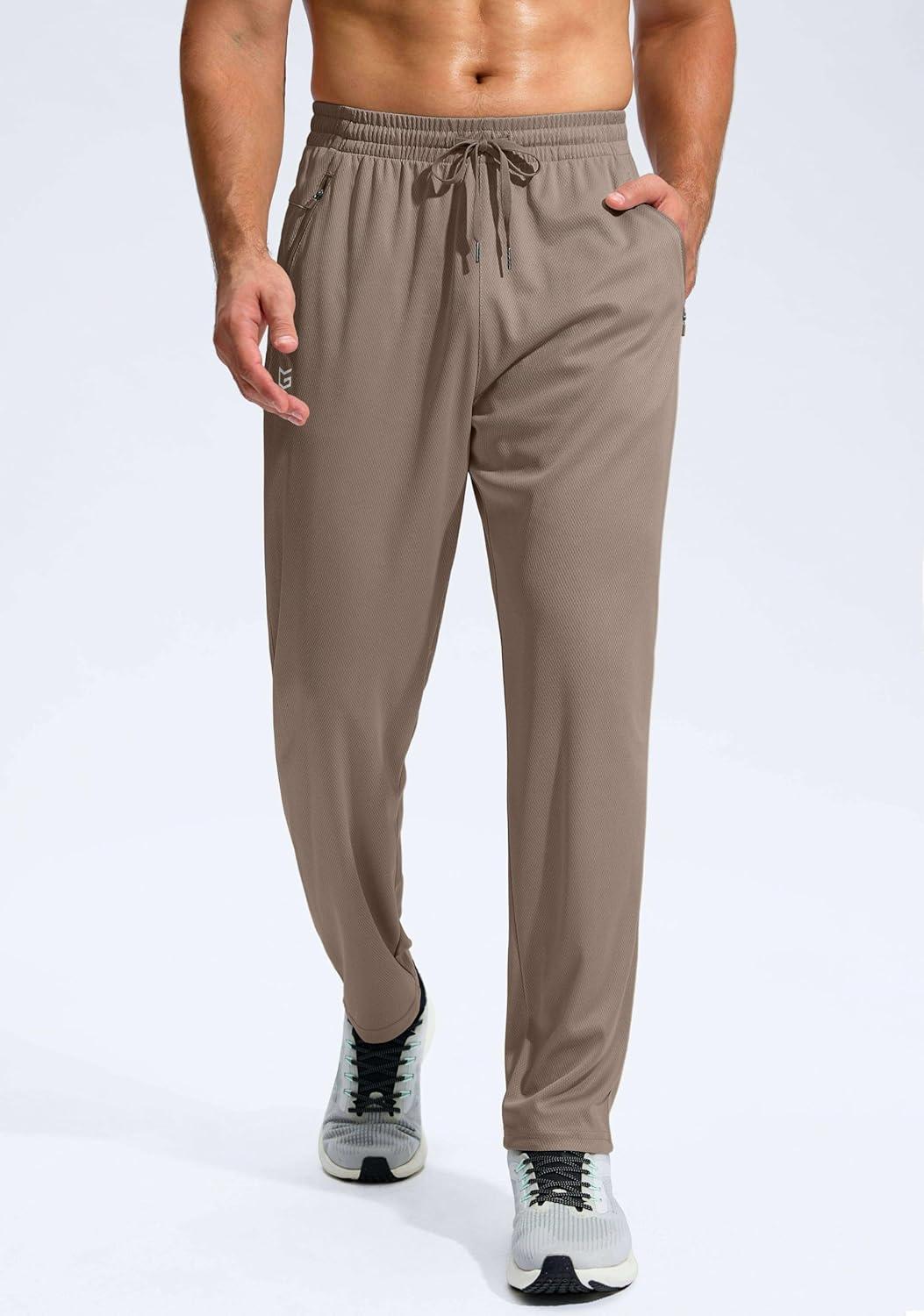G Gradual Men's Sweatpants with Zipper Pockets Lightweight Mesh Athletic Pants for Men Open Bottom Workout Gym Running(Light Brown)