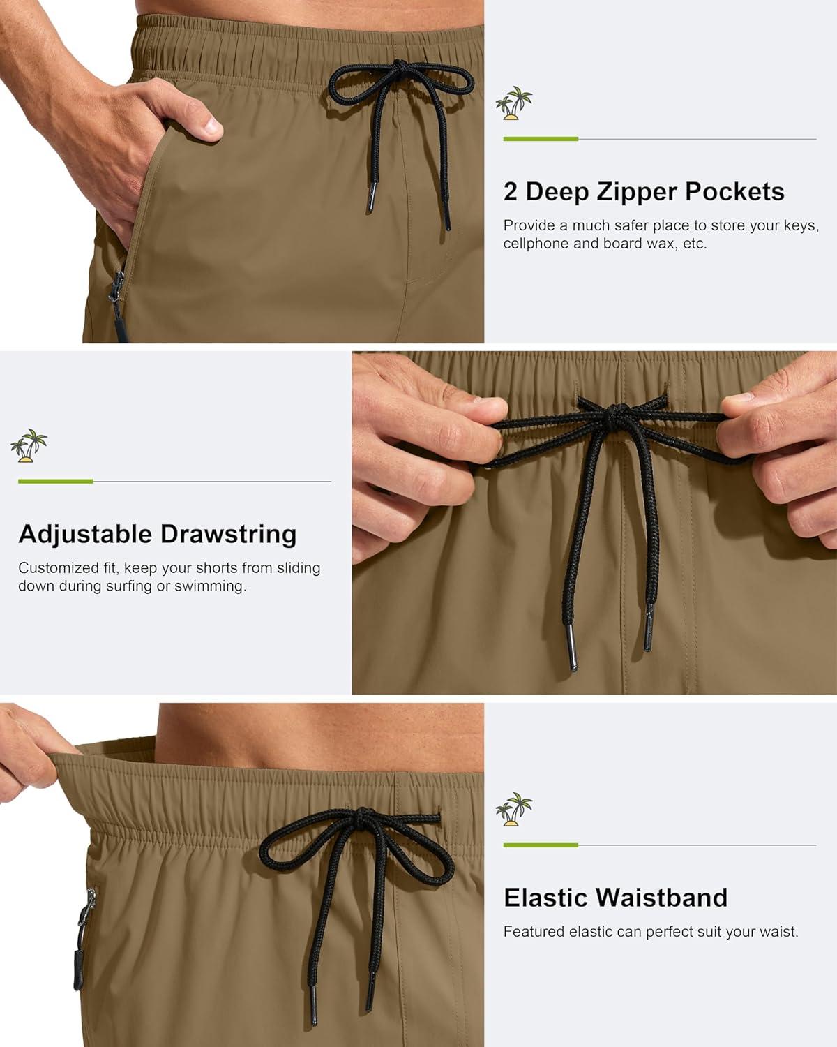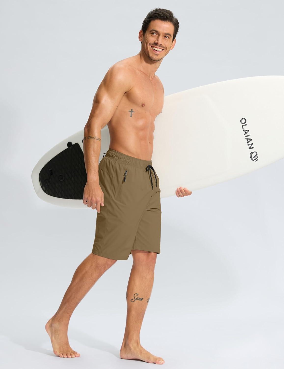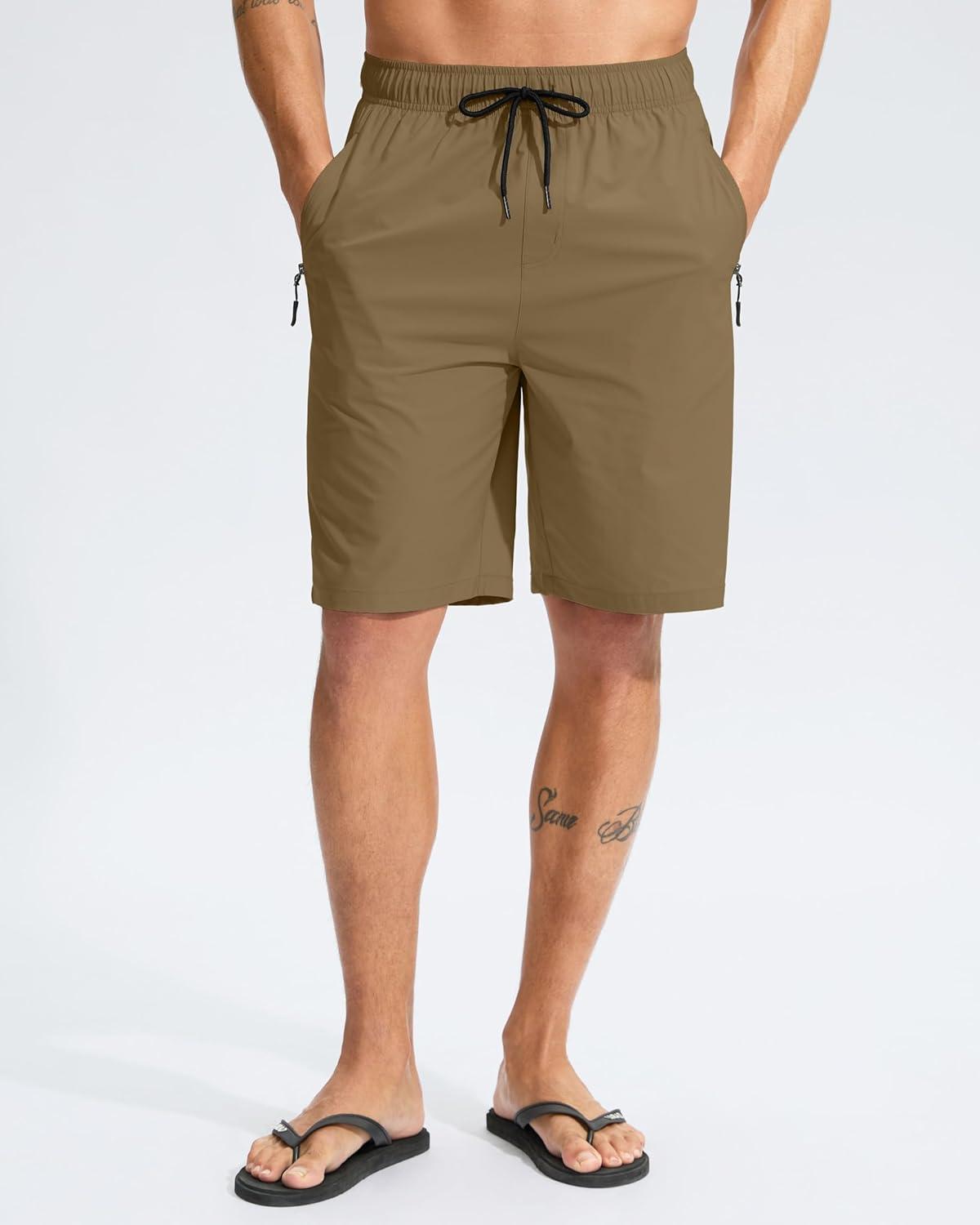 G Gradual Men’s Swim Trunks 9″ Quick Dry Swimming Board Shorts with Zipper Pockets Swimwear Bathing Suit for Men No Liner(Dark Khaki)