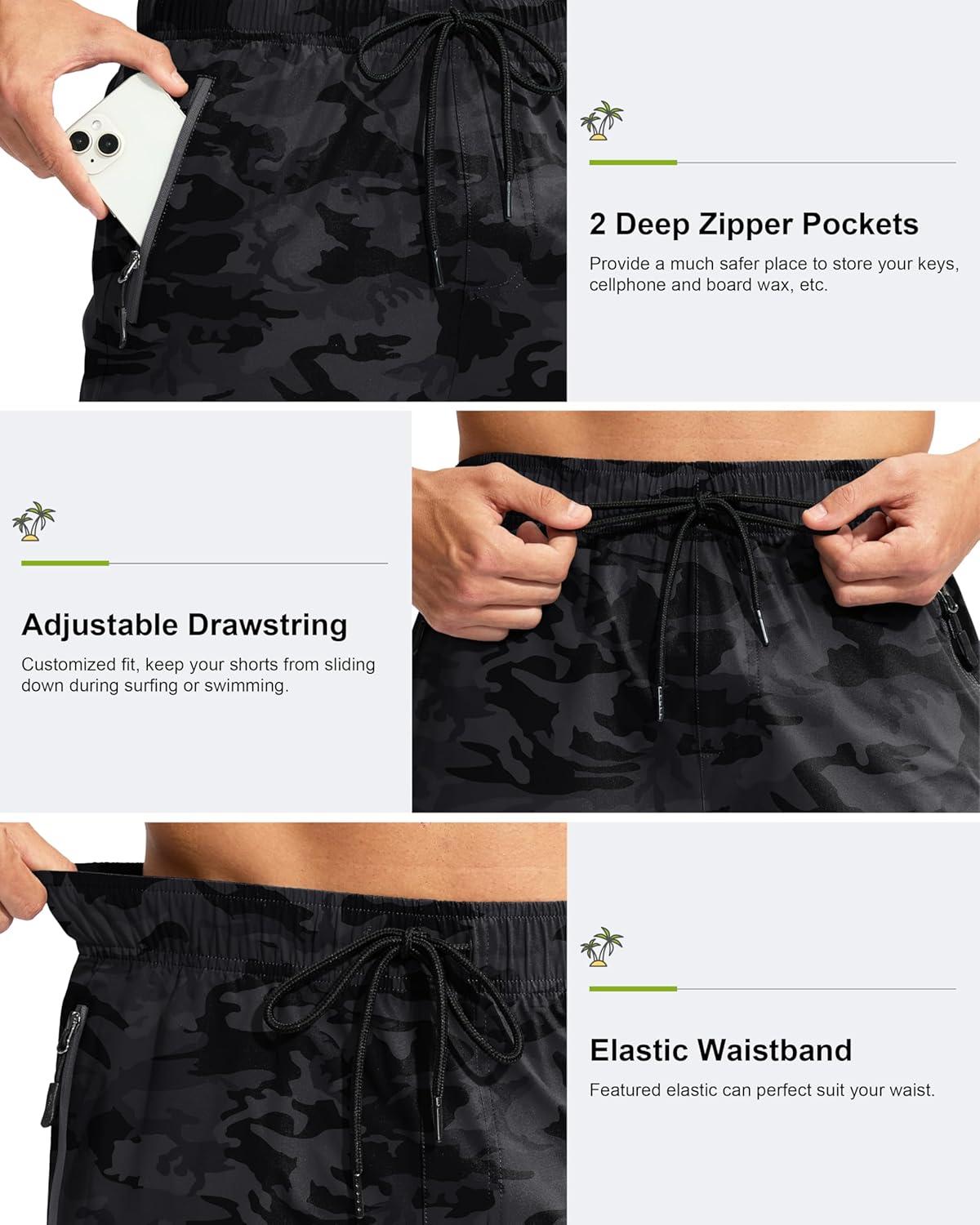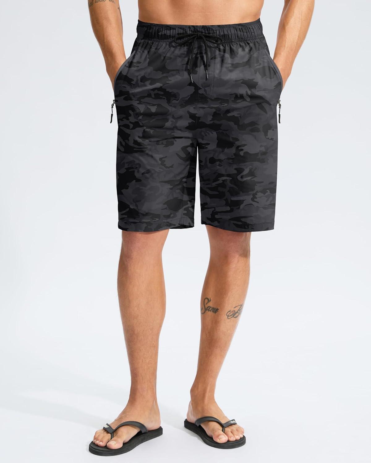 G Gradual Men’s Swim Trunks 9″ Quick Dry Swimming Board Shorts with Zipper Pockets Swimwear Bathing Suit for Men No Liner(Grey Camo)