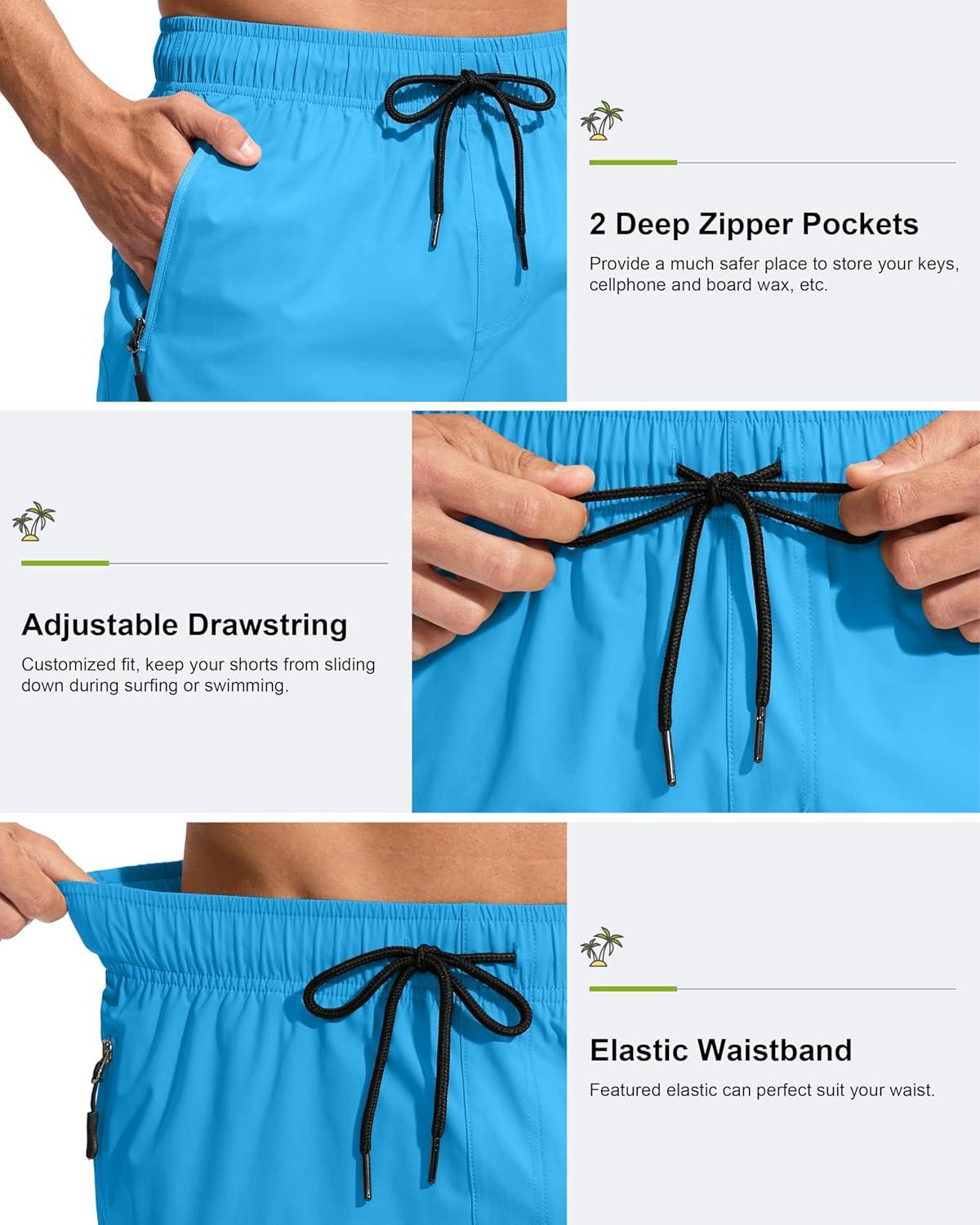 G Gradual Men’s Swim Trunks 9″ Quick Dry Swimming Board Shorts with Zipper Pockets Swimwear Bathing Suit for Men No Liner(Lake Blue)