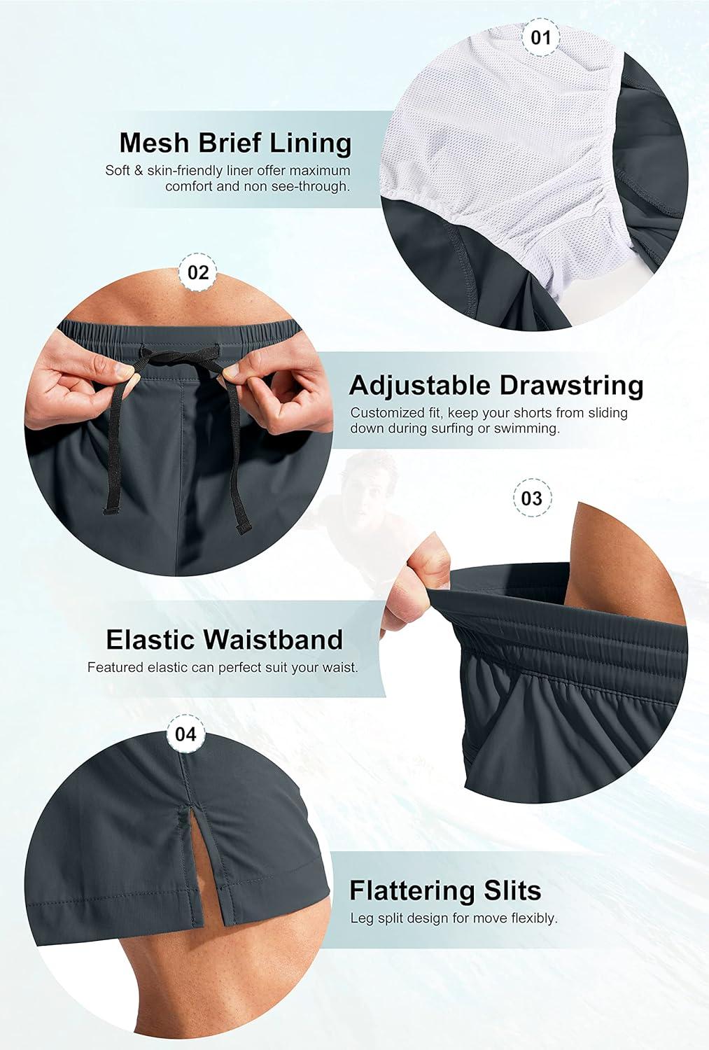 G Gradual Men's Swim Trunks Quick Dry Bathing Suit Beach Board Shorts for Men with Zipper Pockets and Mesh Lining(Dark Grey)