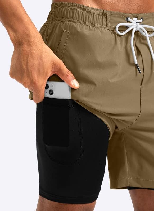 imageG Gradual Mens Swim Trunks with Compression Liner 5 inch Inseam Quick Dry Bathing Suits with Zipper PocketNo Thigh ChafingDark Khaki