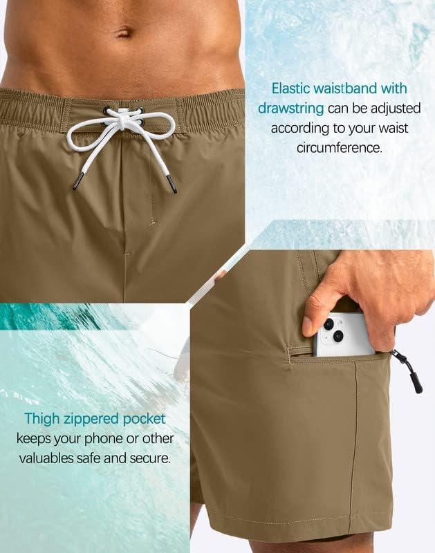 G Gradual Mens Swim Trunks with Compression Liner 5 inch Inseam Quick Dry Bathing Suits with Zipper Pocket-No Thigh Chafing(Dark Khaki)